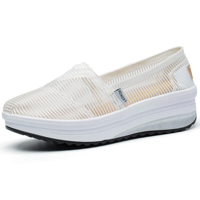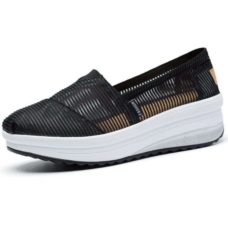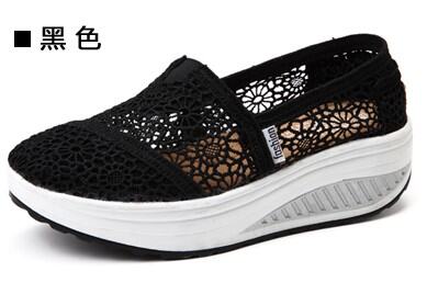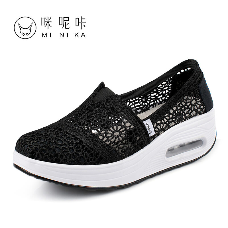 2023 Spring and Summer Lace Rocking Shoes Women's Mesh Breathable Canvas Shoes Thick Sole Hollow out Shoes Casual Old Beijing Cloth Shoes