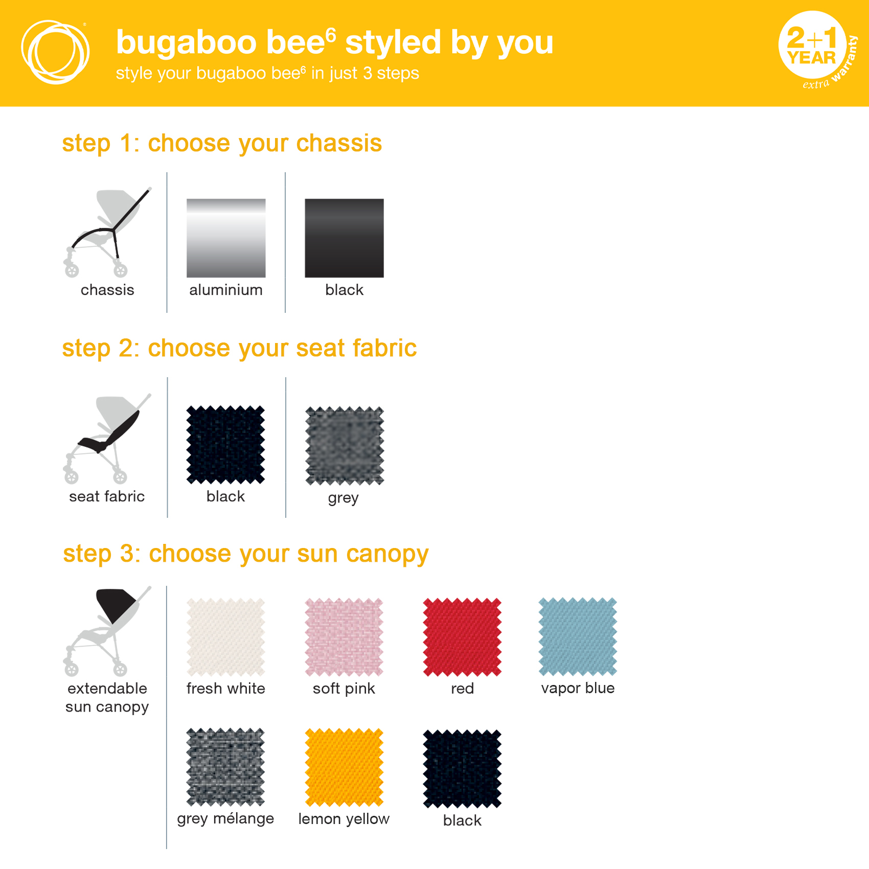 Black Chassis + Grey Melange Seat + Lemon Yellow Canopy