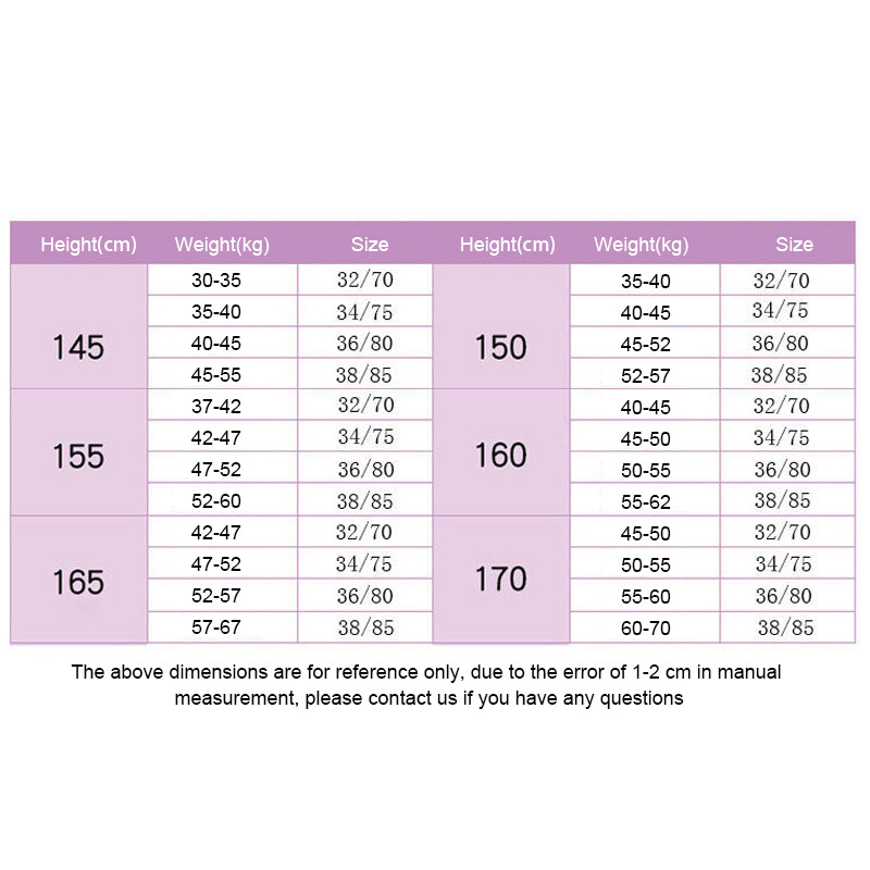 - Size: 32/70A, 34/75A, 36/80B, 38/85B