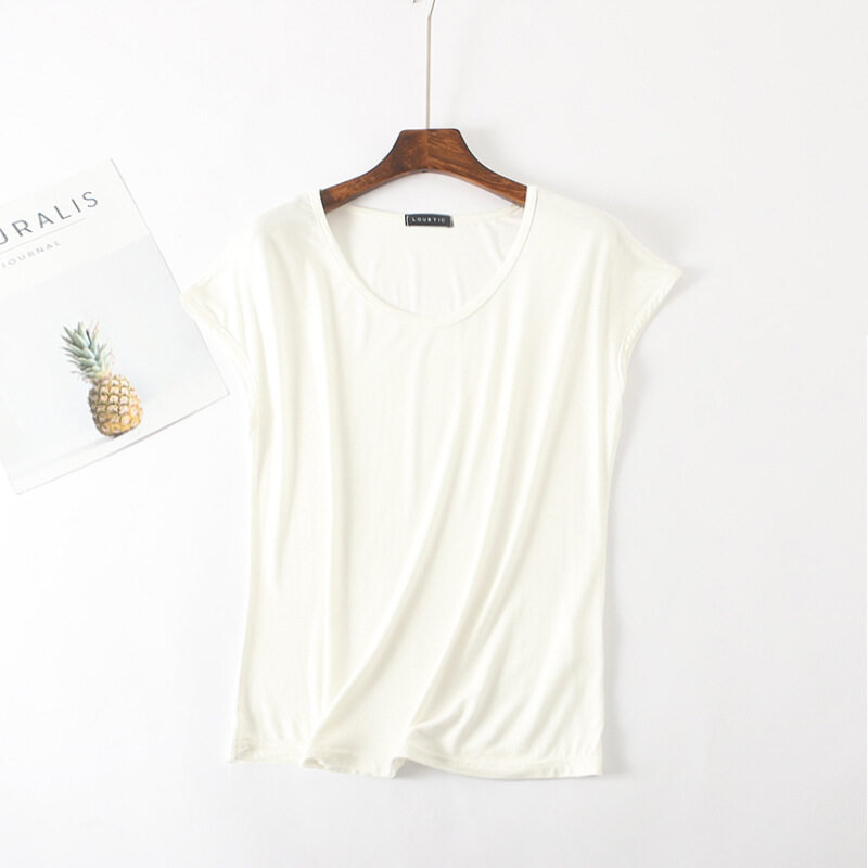 Ruizhijzg Ready stock Bamboo Fiber T shirt for Women Home Wear Summer Sleeveless Shirt Round neck Top Plain White Pink Modal Cotton Black Dark Blue Green Ladies Slim Tshirt Korean Style