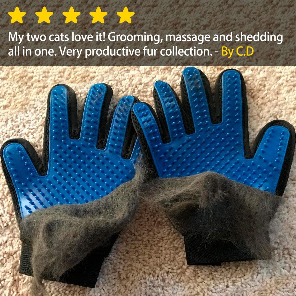 1 pair Pet Grooming Glove Gentle Deshedding Brush Glove Efficient Pet Hair Remover Mitt Enhanced Five Finger Design Perfect for Dog & Cat with Long & Short Fur