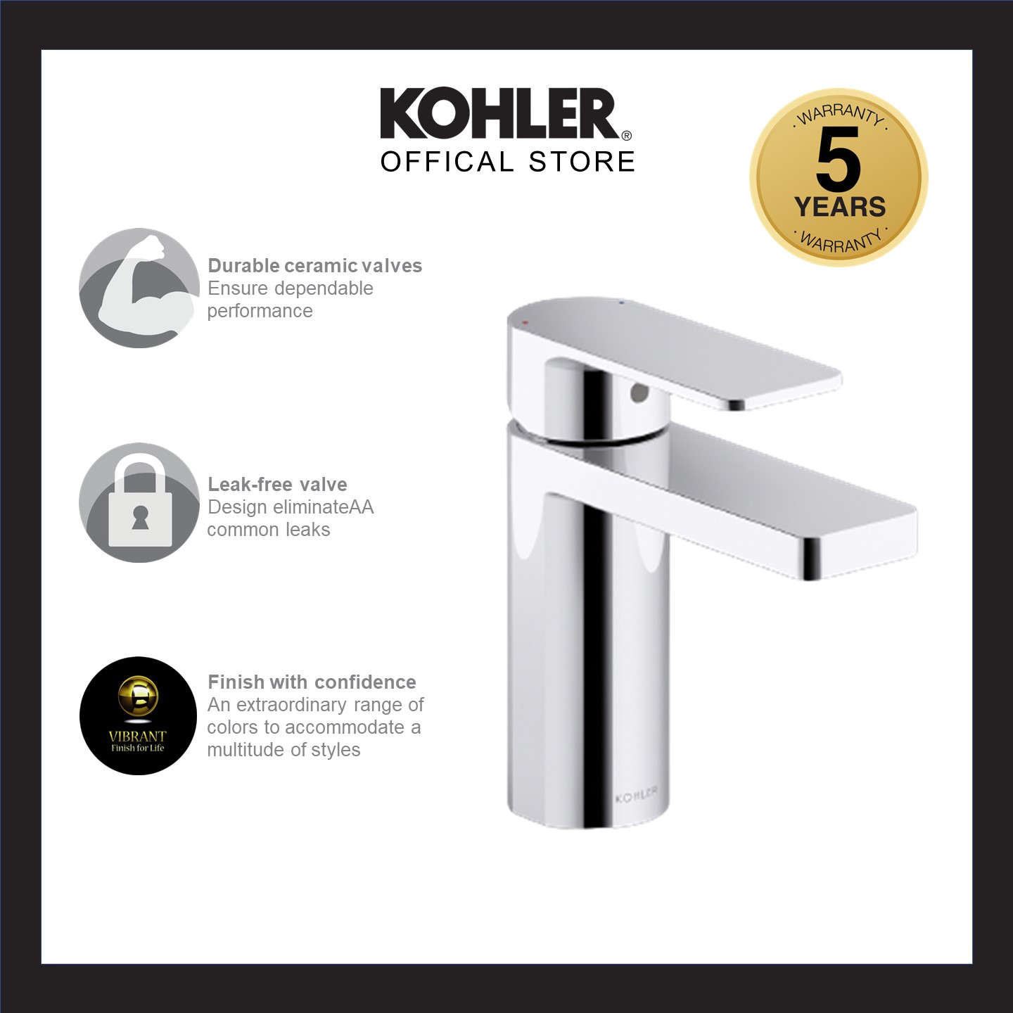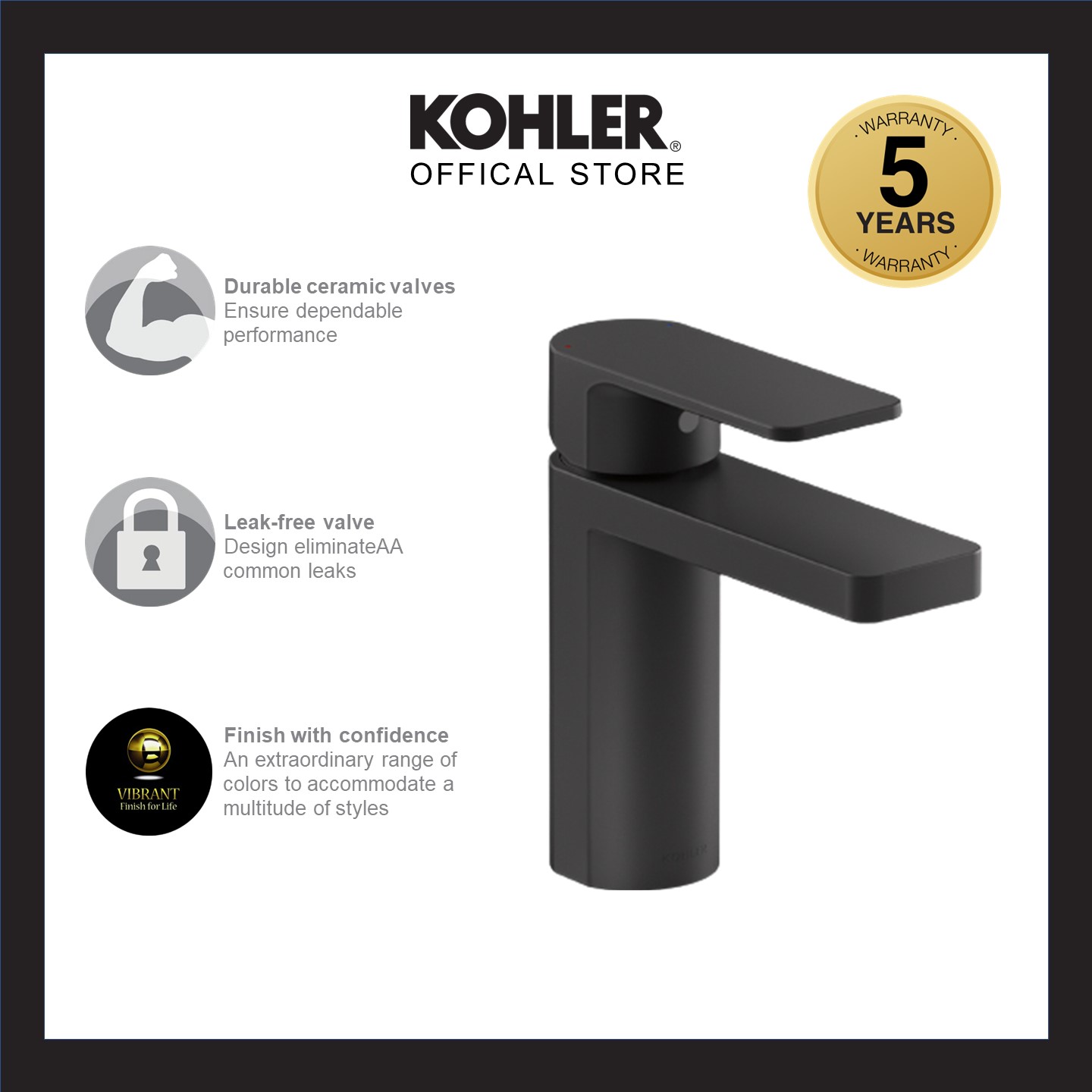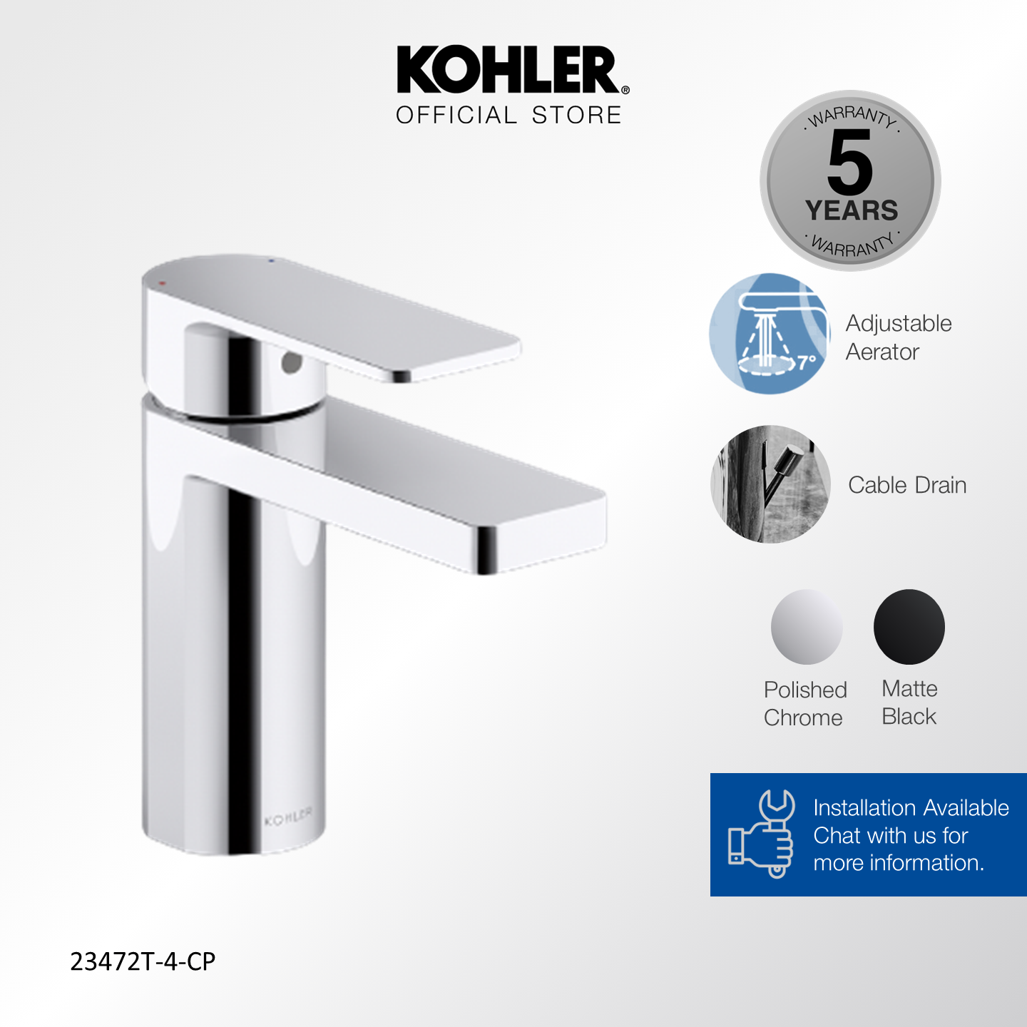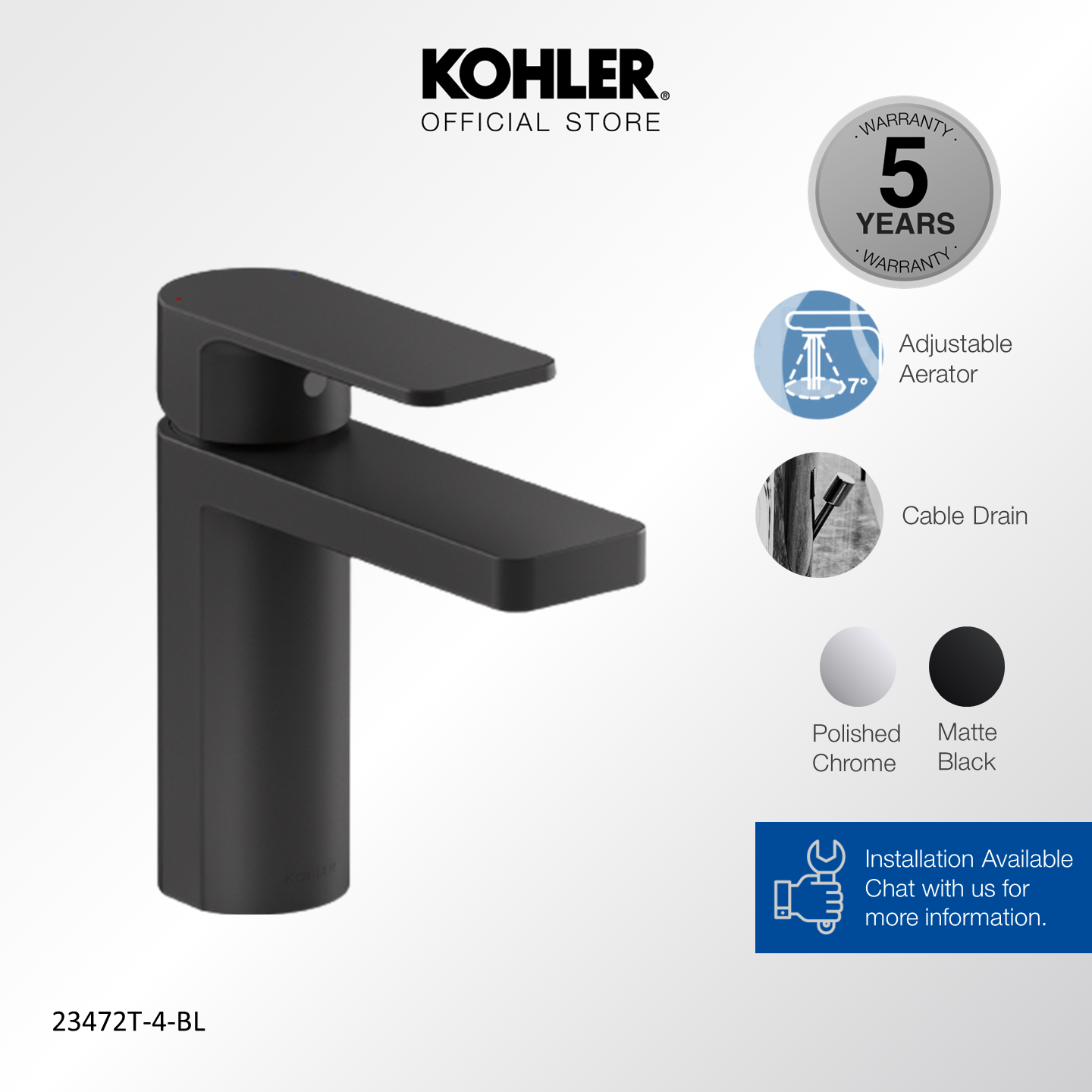 KOHLER Parallel Lavatory Faucet / Basin Mixer, Polished Chrome K-23472T-4-CP / Matt Black K-23472T-4-BL