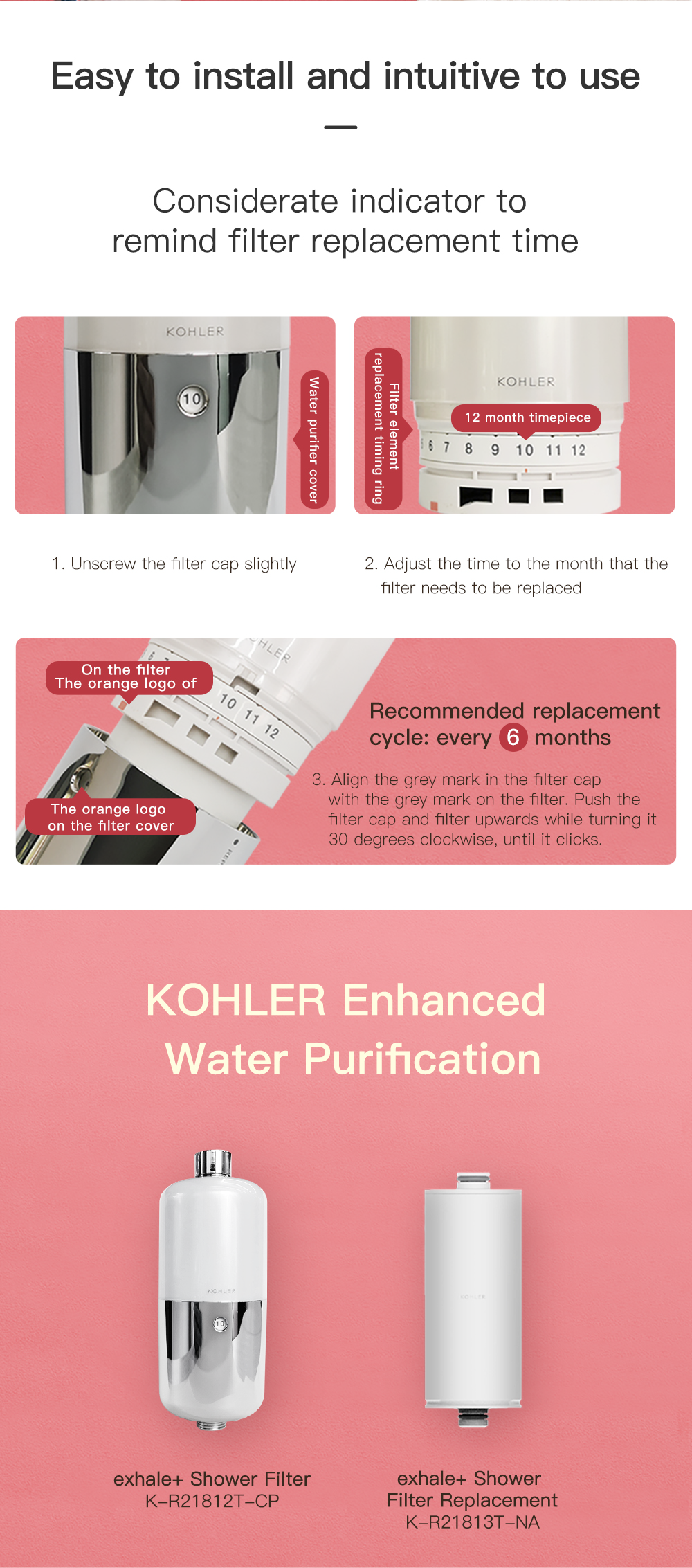 KOHLER Exhale+ Shower Filter With Vitamin C, Enhanced Purification K-R21812T-CP / K-R21813T-NA