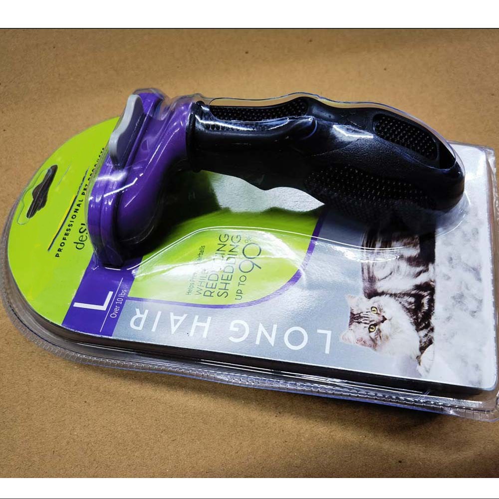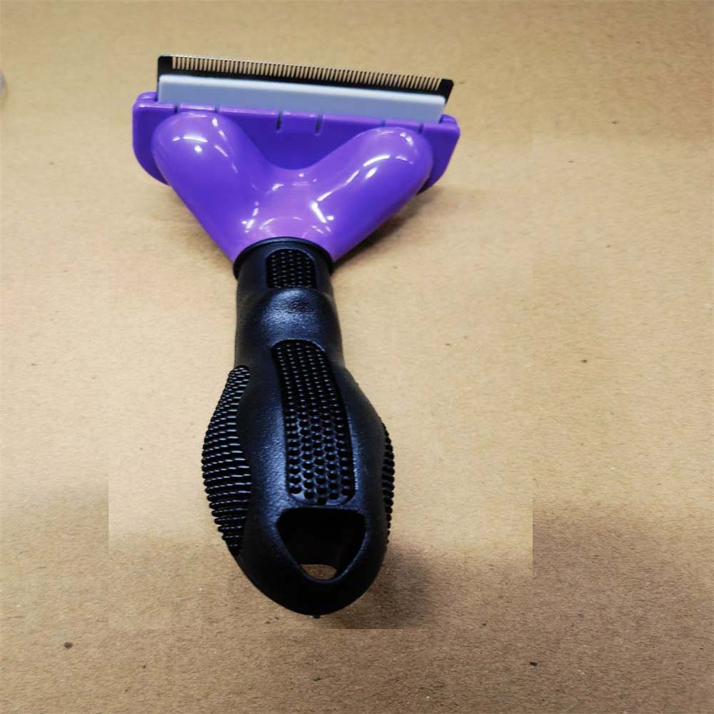 Stainless steel deShedding edge reaches through topcoat to safely and easily remove loose hair and undercoat