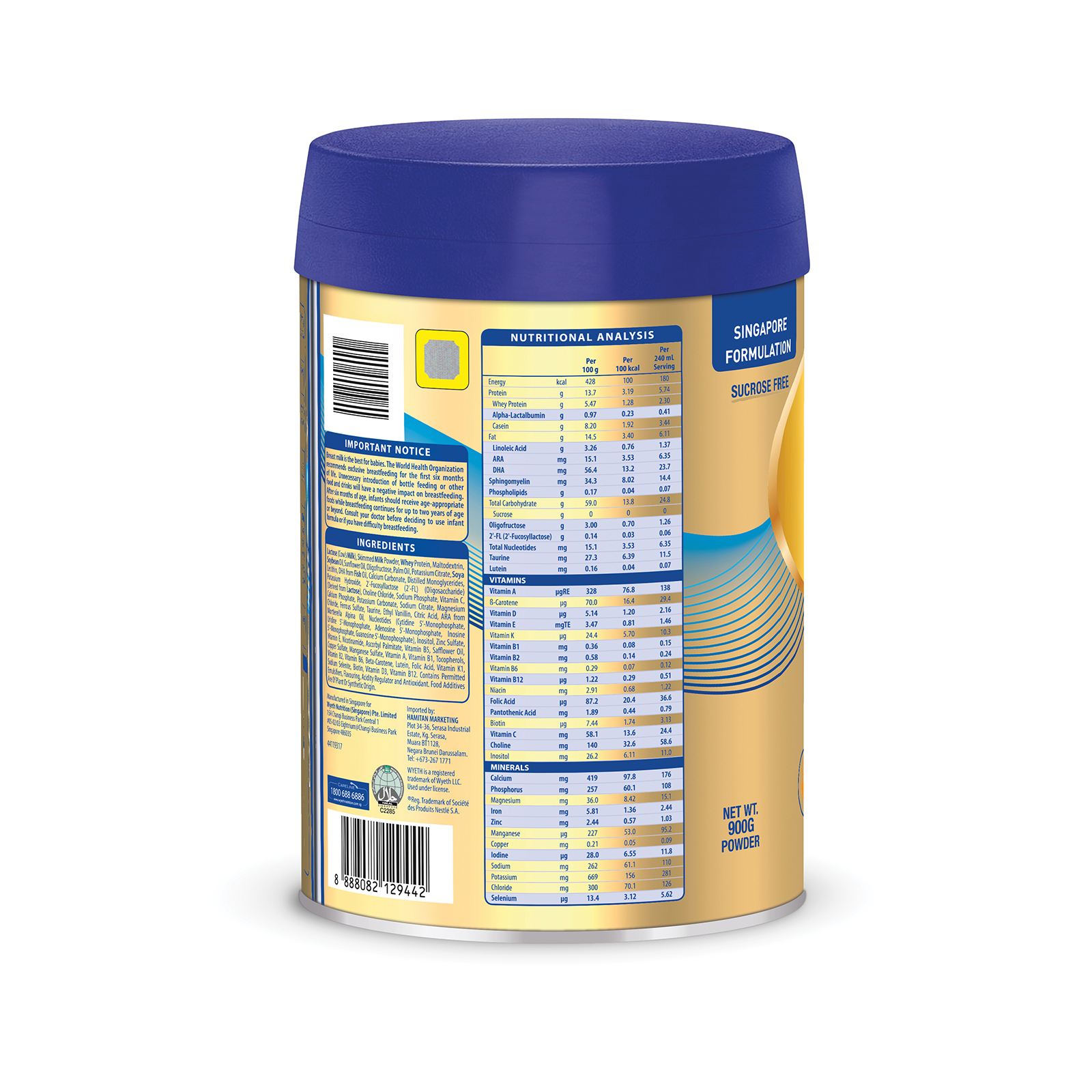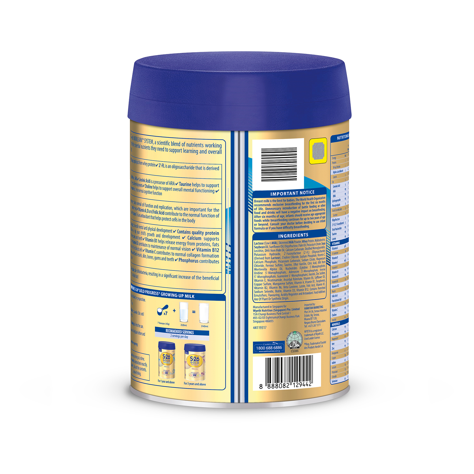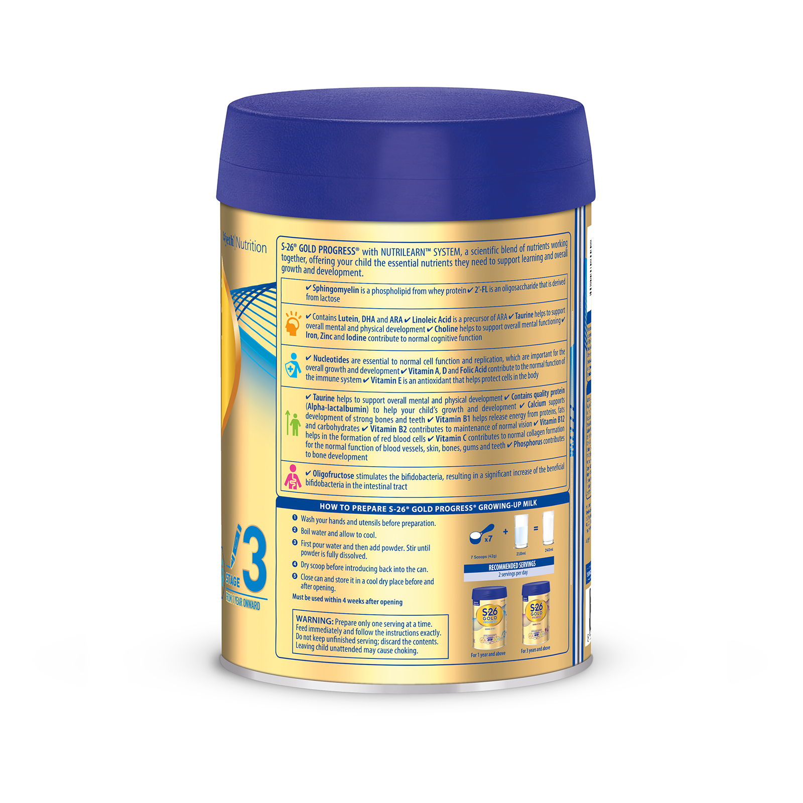 The First 5 years of a child’s life are the most crucial for their development, as the child grows rapidly during this period. Appropriate nutrition is fundamental for their physical and mental development.S-26 Gold Progress® Stage 3 with Nutrilearn SystemTM - contains a scientific blend of essential nutrients to support your child’s overall physical and mental development. It contains: