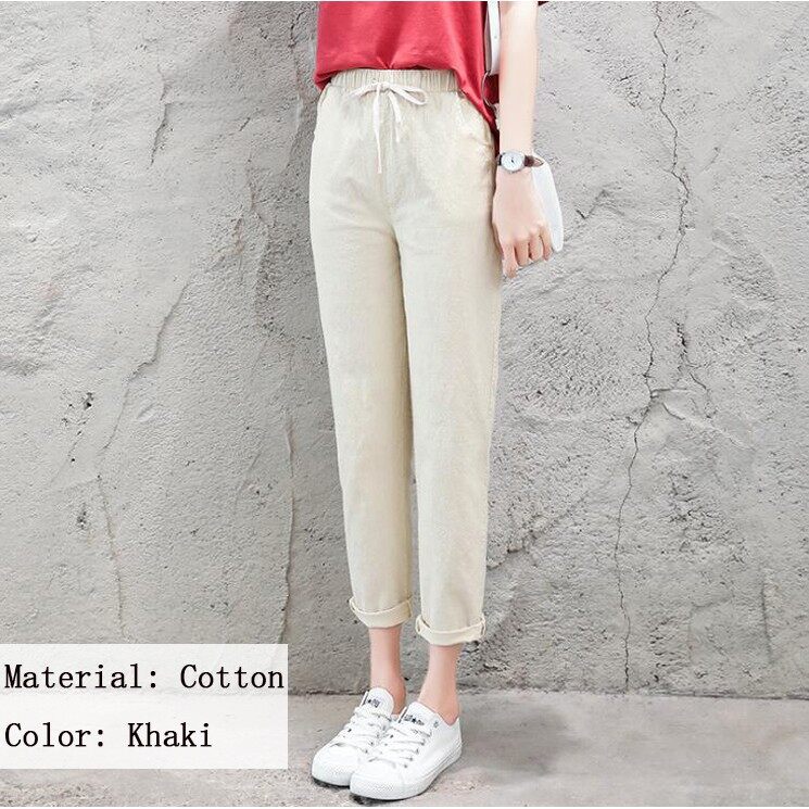Women Trousers Female Cotton Loose Casual Pants Plus Size Seluar