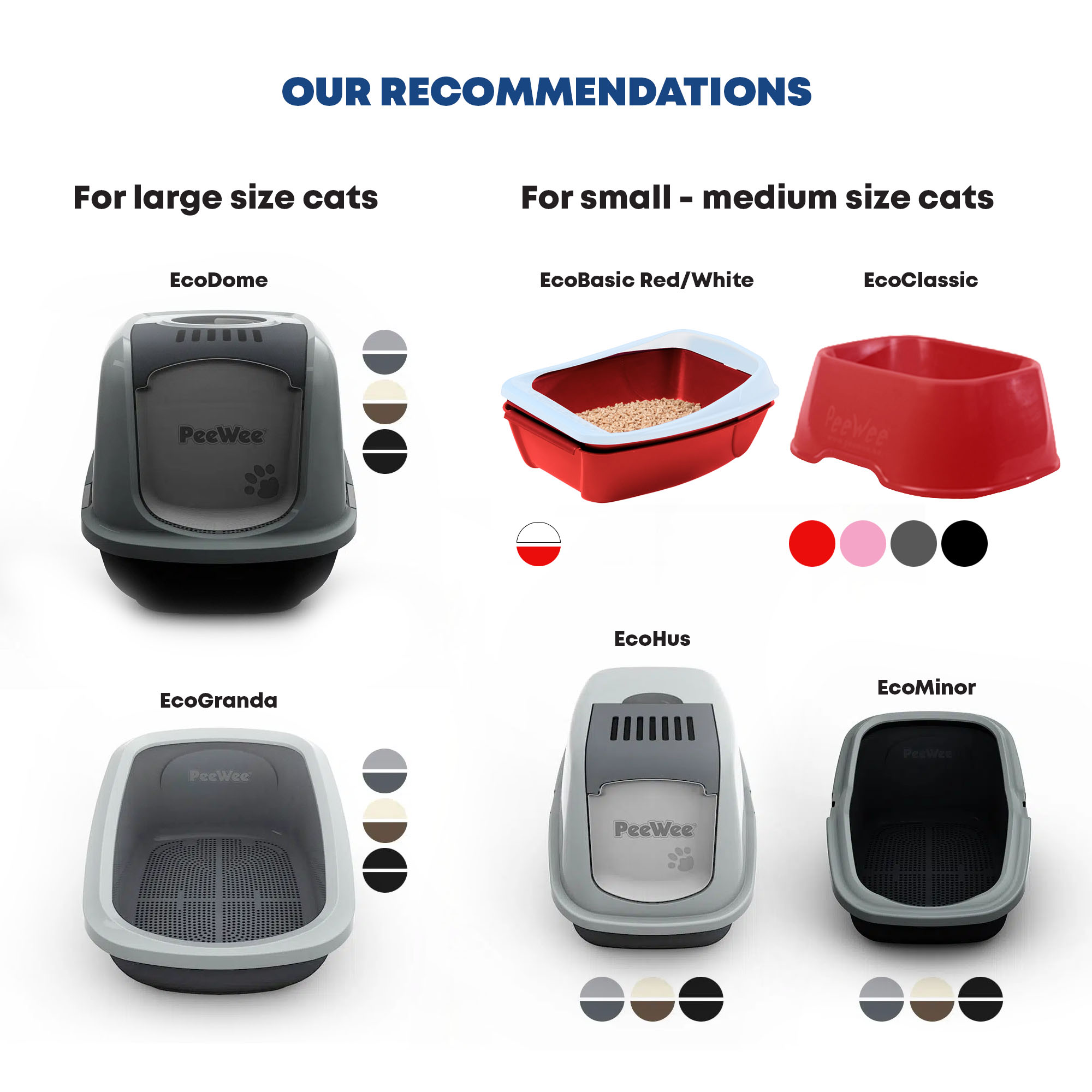 The PeeWee Eco Wood Litter 9kg is specially designed for cats. The wood shavings and pellets don't stick to paws; that's better for your cat and rids your home of soiled cat litter dust! PeeWee wood pellets have the unique characteristic of neutralising the smell of ammonia and absorbing considerably more moisture than any other cat litter on the market − up to 15 times their own volume! One bag of pellets can last for 3-4 months in a single cat household when used with PeeWee litter boxes.
