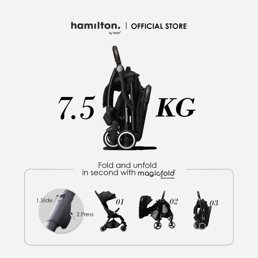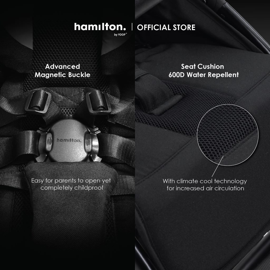 The Hamilton stroller, X1 Plus is made up of top-quality anodised aluminium frame and premium fabric, thanks to its spacious and comfortable seat, the stroller will carry your baby safely from birth to 4 years old, approx. 22kg.