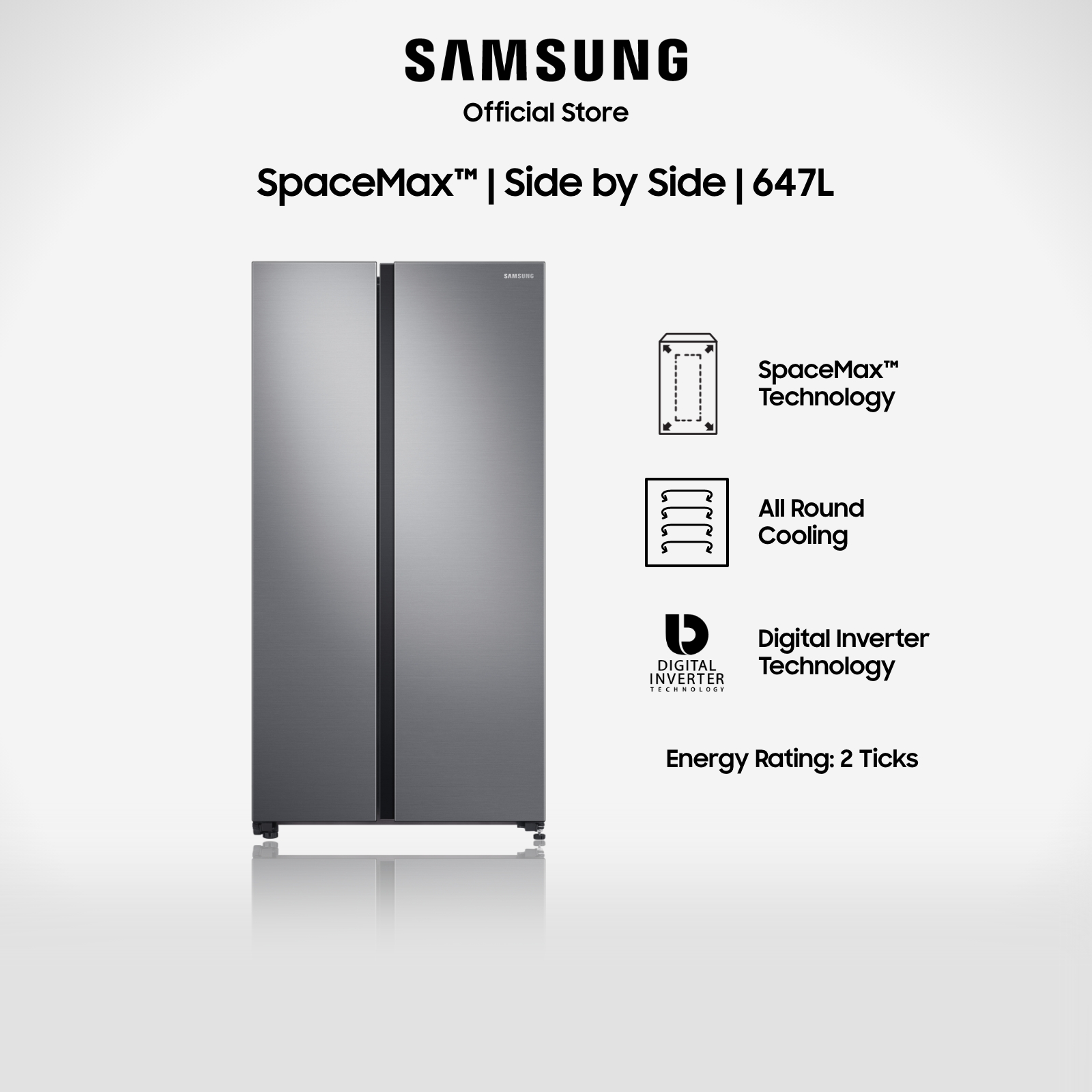 Samsung RS62R5004M9/SS, Side-by-side Refrigerator, 647L, 2 Ticks