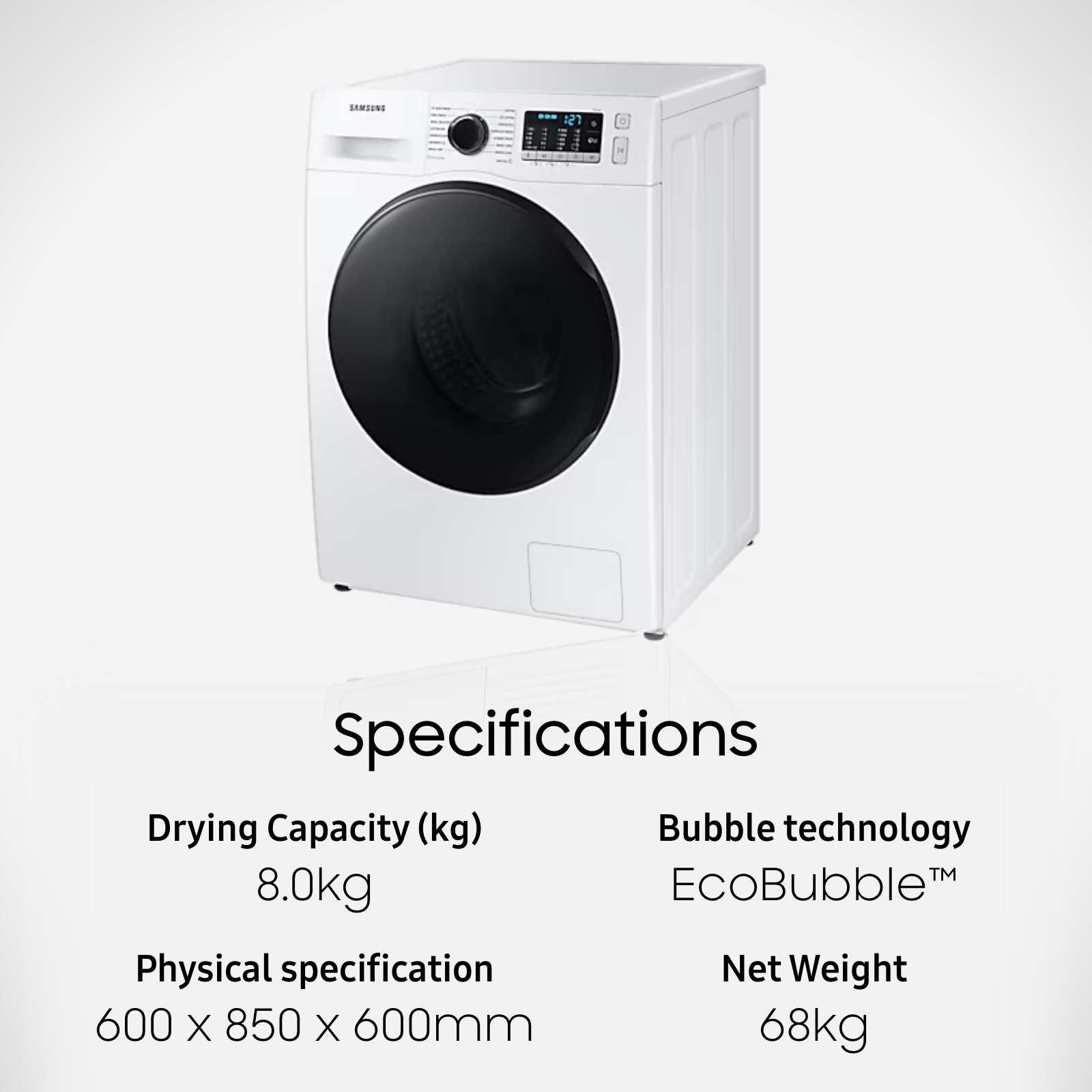 Samsung WD80TA046BE/SP, Washer Dryer, 8/6KG, 4 Ticks, with EcoBubble™