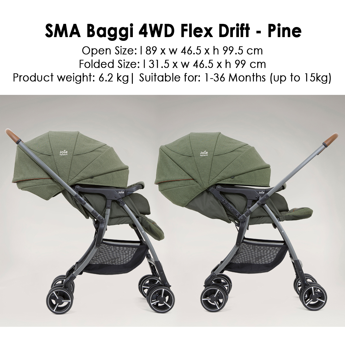 (EXCLUSIVE) Joie SMA Baggi 4WD Drift Signature Stroller FREE Rain Cover (1 Year Warranty)