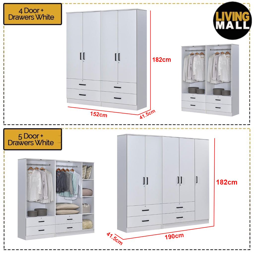 4 Door+Drawers White - L 152. x D 41.5. x H 182. cm