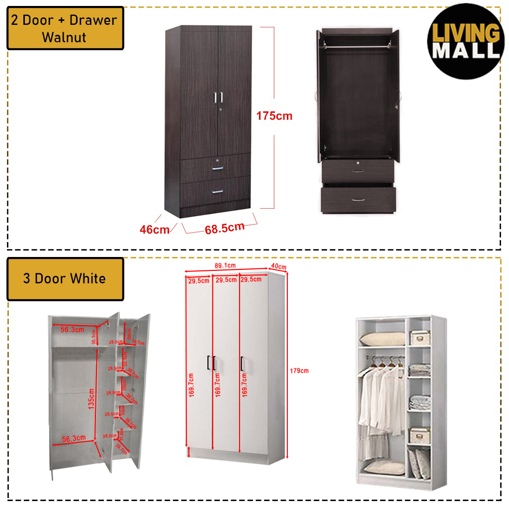 2 Door + Drawer White - L 76. x D 41.5. x H 182 cm