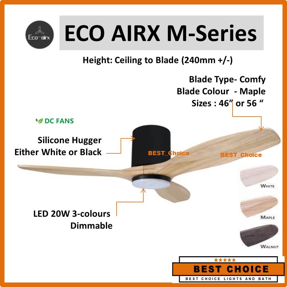 FREE Wifi Eco AirX Ceiling Fan White Hugger +Blade Type Comfy 46|56 inch +26W LED Lght Kit (optional) DC Motor Low Ceiling Google Tuya Amazon Alexa