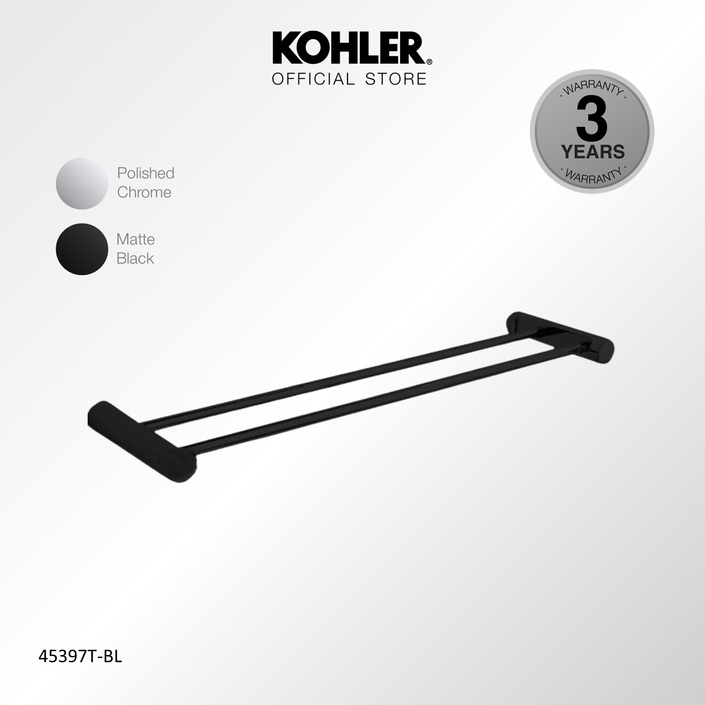 KOHLER 24" July Double Towel Bar Polished Chrome K-45397T-CP/ Matt Black K-45397T-BL
