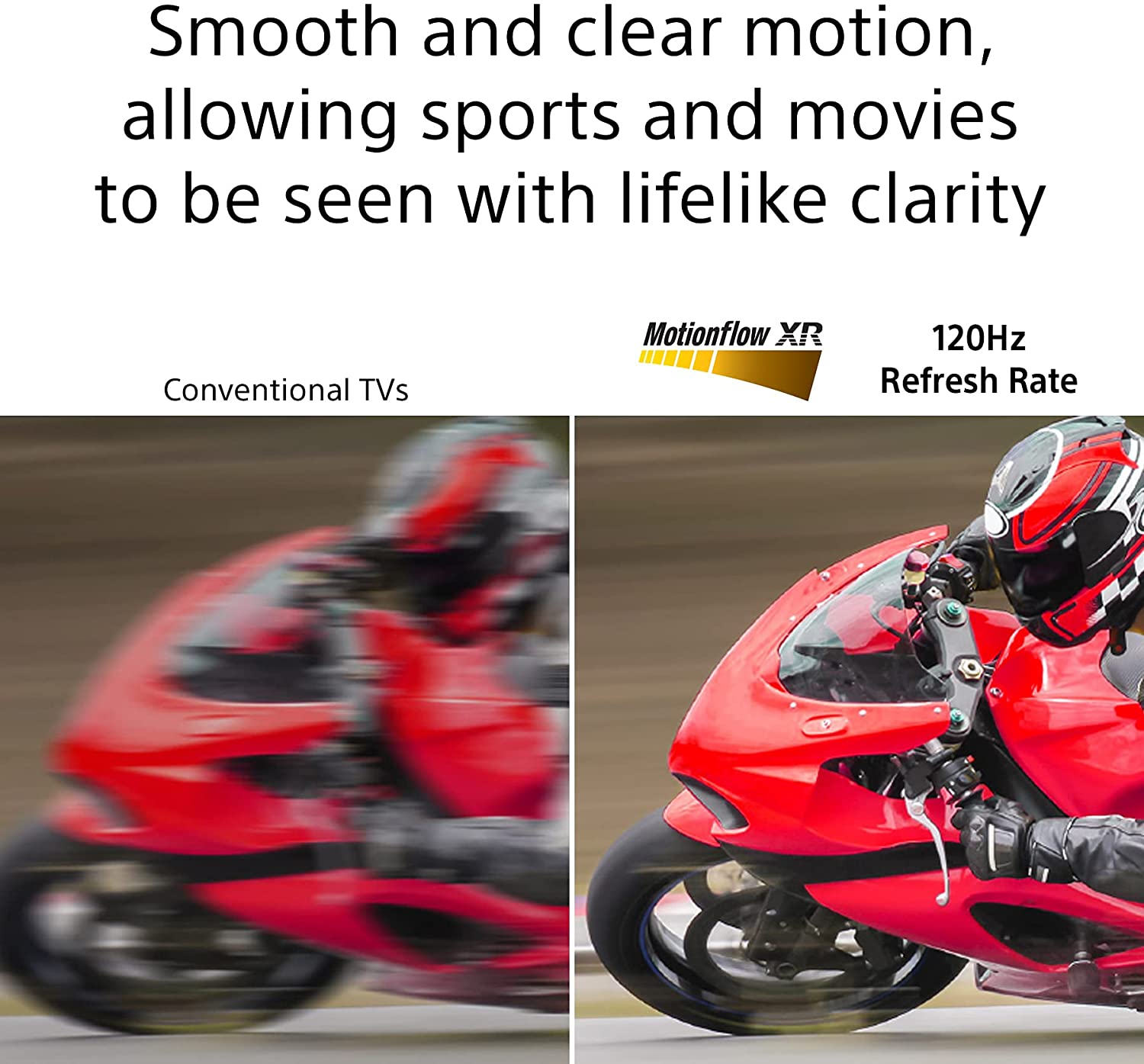 MOTIONFLOW XR WITH NATIVE 120HZ REFRESH RATE– On-screen motion stays smooth and clear, allowing fast moving sequences in sports, action movies, and games to be seen with lifelike clarity.
