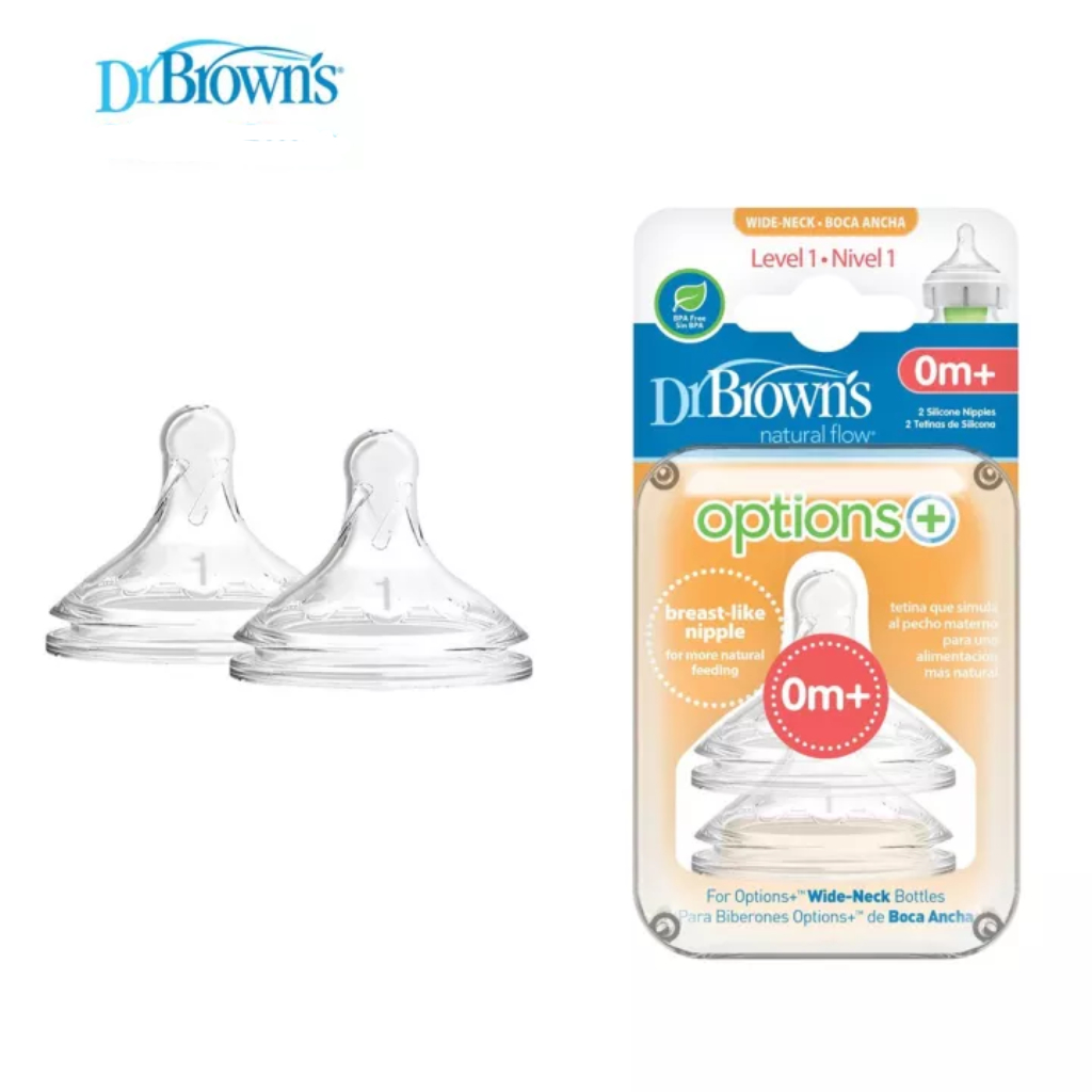 [2 Pcs] Dr Brown BPA-Free Wide Neck Silicone Options+ Bottle Teats Level 1-4 & Y-Cut - 0M+ | dr brown teat / teat / bottle teat