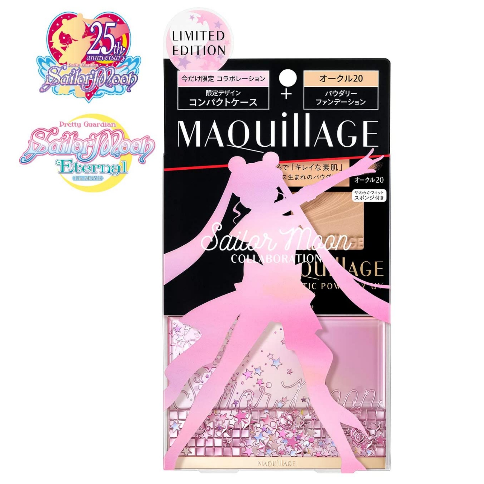 Product Introduction This limited edition set includes a specially designed compact case with stars and motifs that express the sparkle of the moment of transformation, and a powdery foundation. It's like having "beautiful skin. The mousse-based powder foundation softly and lightly covers pores and uneven skin tone, and comes with a limited-edition compact case decorated with a glittering motif of transformation. (C) Naoko Takeuchi, PNP/"Sailor Moon Eternal" the Movie Production Committee (C) Naoko Takeuchi [Contents] ・Dramatic Powdery UV (Refill) (Refill) Current product 9.3g SPF25/PA+++ all season with water Dual use without water. Comes with a soft-fitting sponge. Compact case SM2 (limited design), horizontal type Precautions for use Dramatic Powdery UV】 Please keep the sponge clean and use it as it will make the foundation surface hard and difficult to apply. If the sponge gets dirty, use Shiseido Sponge Cleaner N (sold separately) or lightly wash the sponge with a thin layer of neutral detergent in lukewarm water. Rinse thoroughly to remove any detergent residue, then drain and dry in the shade before use. If you find that the texture or finish of the product is not satisfactory, please use the Maquillage Sponge Puff (SF) (sold separately). Please note that the sponge puff may break if it is dropped or otherwise impacted. The SPF and PA indications on the product are measured by applying 2mg per square meter of application to the skin as specified in the International SPF Test Method. Directions for use Dramatic Powdery UV】 Put an appropriate amount on a sponge and spread from the center of the face outward. Use the remaining foundation on the sponge to finish the forehead, eye area, nose and mouth. We recommend using this foundation in combination with a makeup base such as Maquillage Dramatic Skin Sensor Base EX, which provides UV protection. Use only a small amount to achieve sufficient UV protection. Take out the inner case of the foundation (refill) and the soft-fitting sponge, and place them in the case. When setting the foundation (refill), insert the inner dish diagonally in the direction of the arrow as shown in the illustration, and press the edge of the dish from above until it clicks into place. To remove the inner dish from the case, place your finger on the edge of the inner dish and gently push it upward in the direction of the arrow. Translated with www.DeepL.com/Translator (free version)