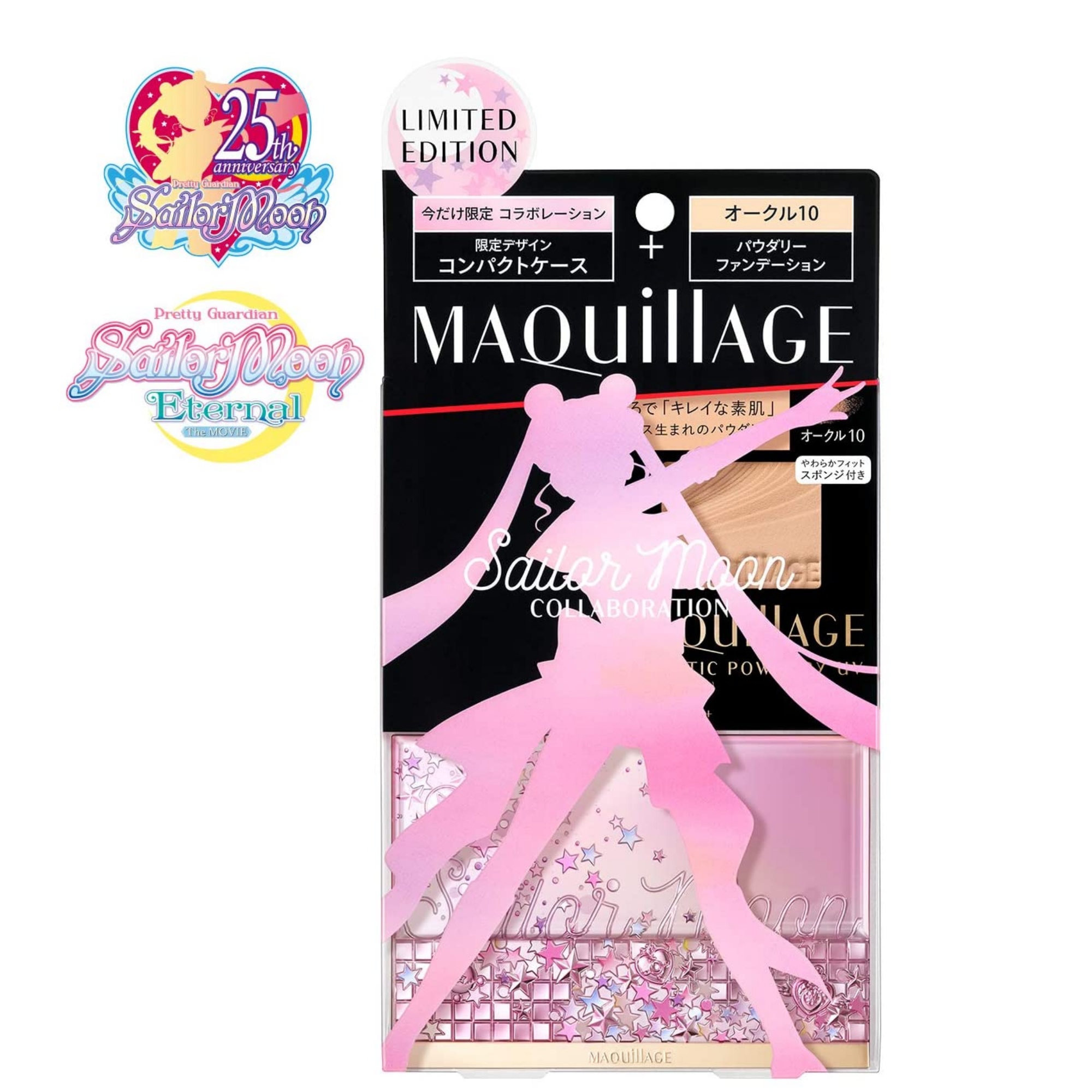 Product Introduction This limited edition set includes a specially designed compact case with stars and motifs that express the sparkle of the moment of transformation, and a powdery foundation. It's like having "beautiful skin. Softly and lightly blur pores The limited edition compact case is decorated with a glittering motif of transformation. (C) Naoko Takeuchi, PNP / "Sailor Moon Eternal" the Movie Production Committee (C) Naoko Takeuchi Dramatic Powdery UV (Refill) 9.3g SPF25/PA+++ all-season, dual-use type with/without water. Compact case SM2 (limited design), horizontal type Precautions for use Dramatic Powdery UV Always keep the sponge clean and use it as it will make the surface of the foundation hard and difficult to apply. If the sponge gets dirty, use Shiseido Sponge Cleaner N (sold separately) or lightly wash the sponge with a thin layer of neutral detergent in lukewarm water. Rinse thoroughly to remove any detergent residue, then drain and dry in the shade before use. If you find that the texture or finish of the product is not satisfactory, please use the Maquillage Sponge Puff (SF) (sold separately). Please note that the sponge puff may break if it is dropped or otherwise impacted. The SPF and PA indications on the product are measured by applying 2mg per square meter of application to the skin as specified in the International SPF Test Method. Directions for use Dramatic Powdery UV】 Put an appropriate amount on a sponge and spread from the center of the face outward. Use the remaining foundation on the sponge to finish the forehead, eye area, nose and mouth. We recommend using this foundation in combination with a makeup base such as Maquillage Dramatic Skin Sensor Base EX, which provides UV protection. Use only a small amount to achieve sufficient UV protection. _ Compact Case SM2 Take out the inner dish of the foundation (refill) and the soft-fitting sponge, and set them in the case. When setting the foundation (refill), insert the inner dish diagonally in the direction of the arrow as shown in the illustration, and press the edge of the dish from above until it clicks into place. To remove the inner dish from the case, place your finger on the edge of the inner dish and gently push it upward in the direction of the arrow.