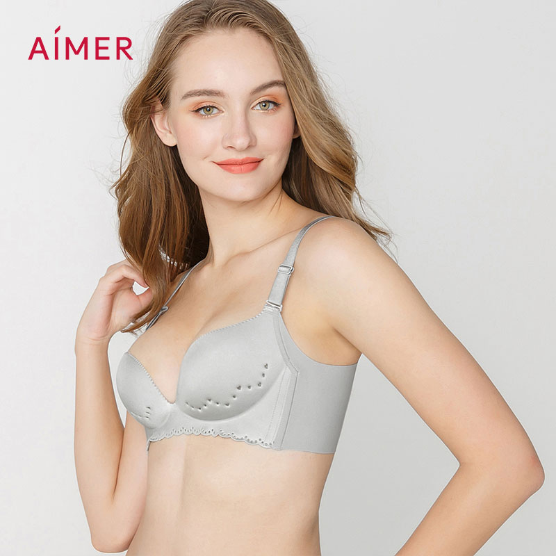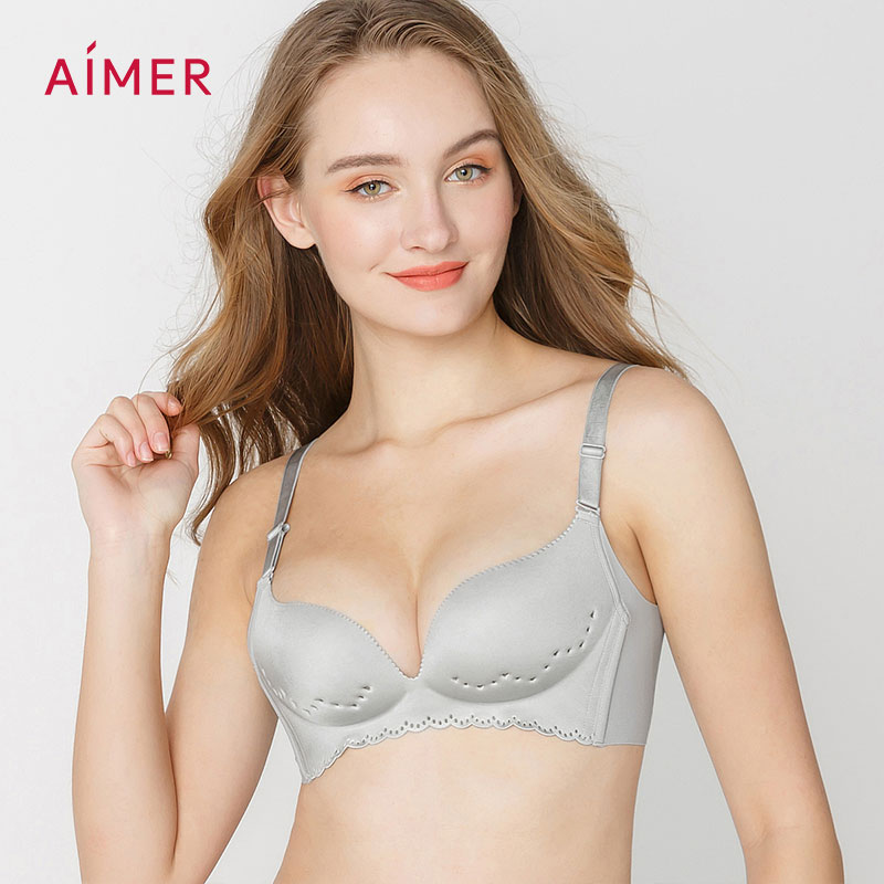 Aimer Wireless Bra Plain Hole Breathable Lingerie Push Up Thin Underwear AM174591