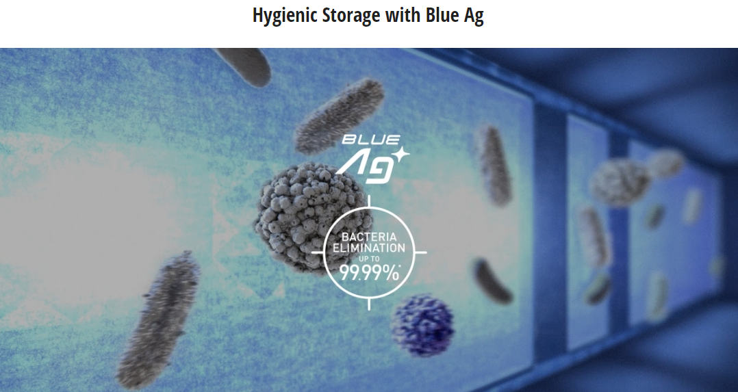 Blue Ag keeps the inside of Extra Cool Zone hygienic while eliminating 99.99%* of bacteria. Enjoy healthy meals prepared with clean ingredients.