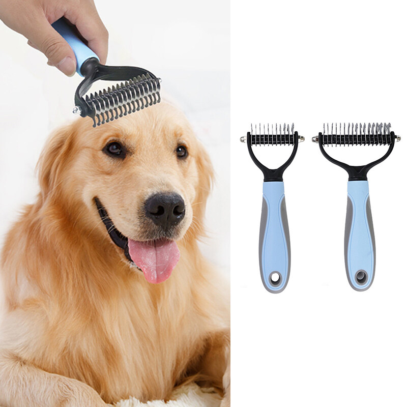 1. Comb: Our pet grooming tool not only works great as a de-matting brush or detangling comb, but you can also use it as an undercoat rake comb or de-shedding rake.