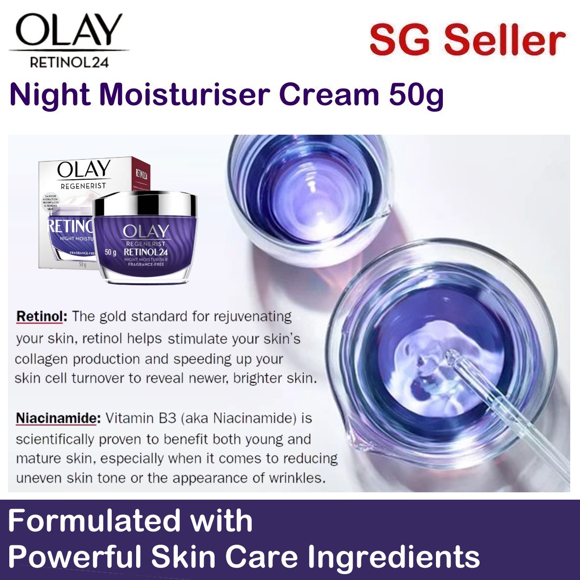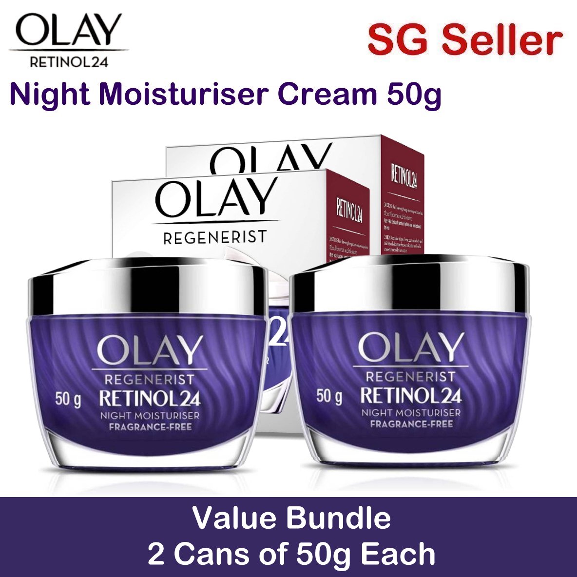 OLAY Regenerist Retinol 24 Night Moisturiser Cream 50g – Options : 1 Can & Value Bundle of 2 Cans – Hydrates Skin for 24 hours – Smoothness , Brightness , Firmer Skin – Reduce Fine lines & wrinkles ,