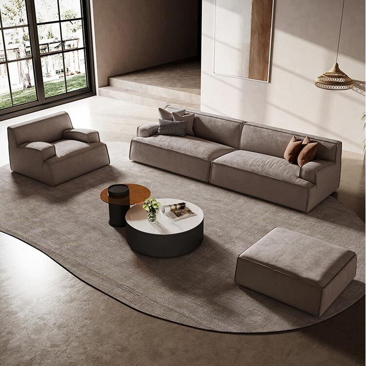 Italian Minimalist Fabric Sofa Modern Minimalist Damascus Baxter Northern Europe Straight Row Three-Seat Living Room Sofa