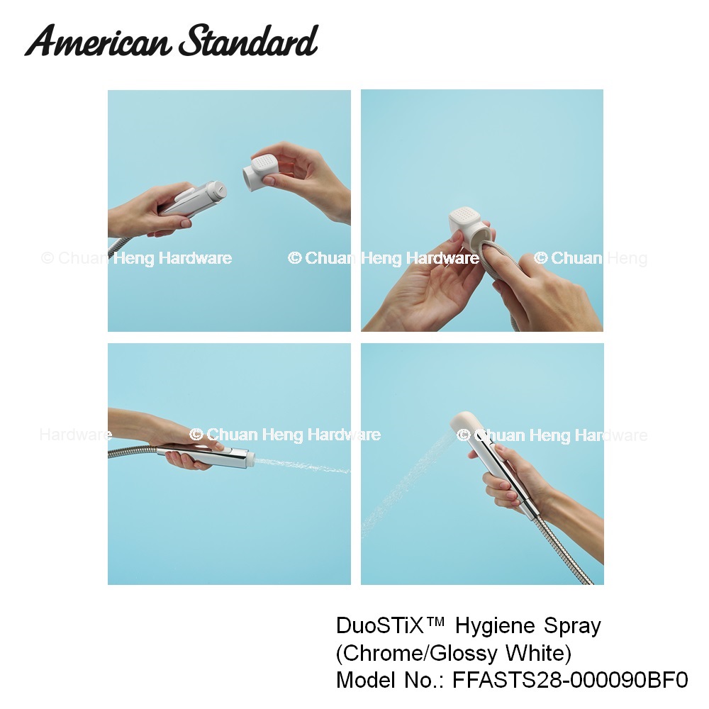 American Standard FFASTS28-000090BF0 Hygiene Spray with Hose and Holder (Chrome & Glossy White)