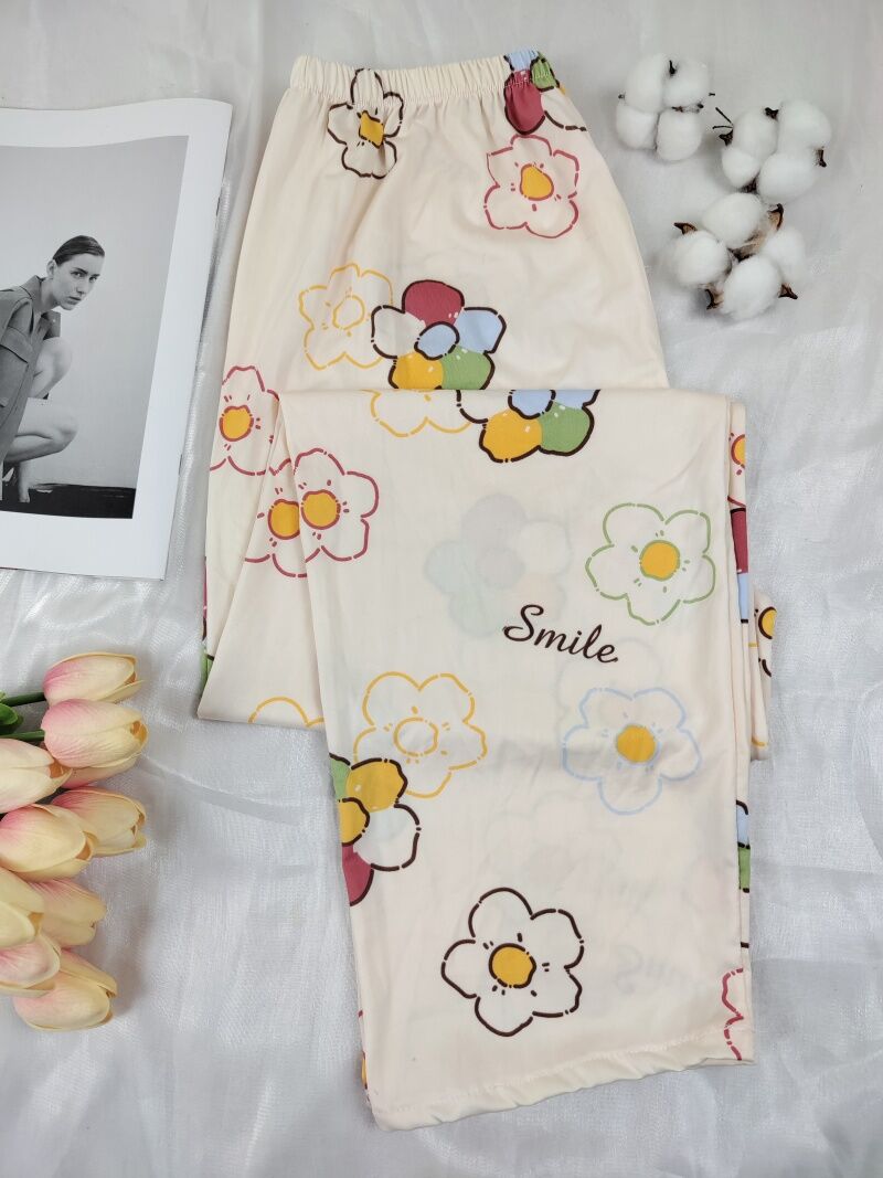 Purified Cotton Pajama Pants Women's Spring, Summer and Autumn Solid Color Casual Trousers Thin Air Conditioning Pants Loose plus Size Can Be Worn outside Home Pants