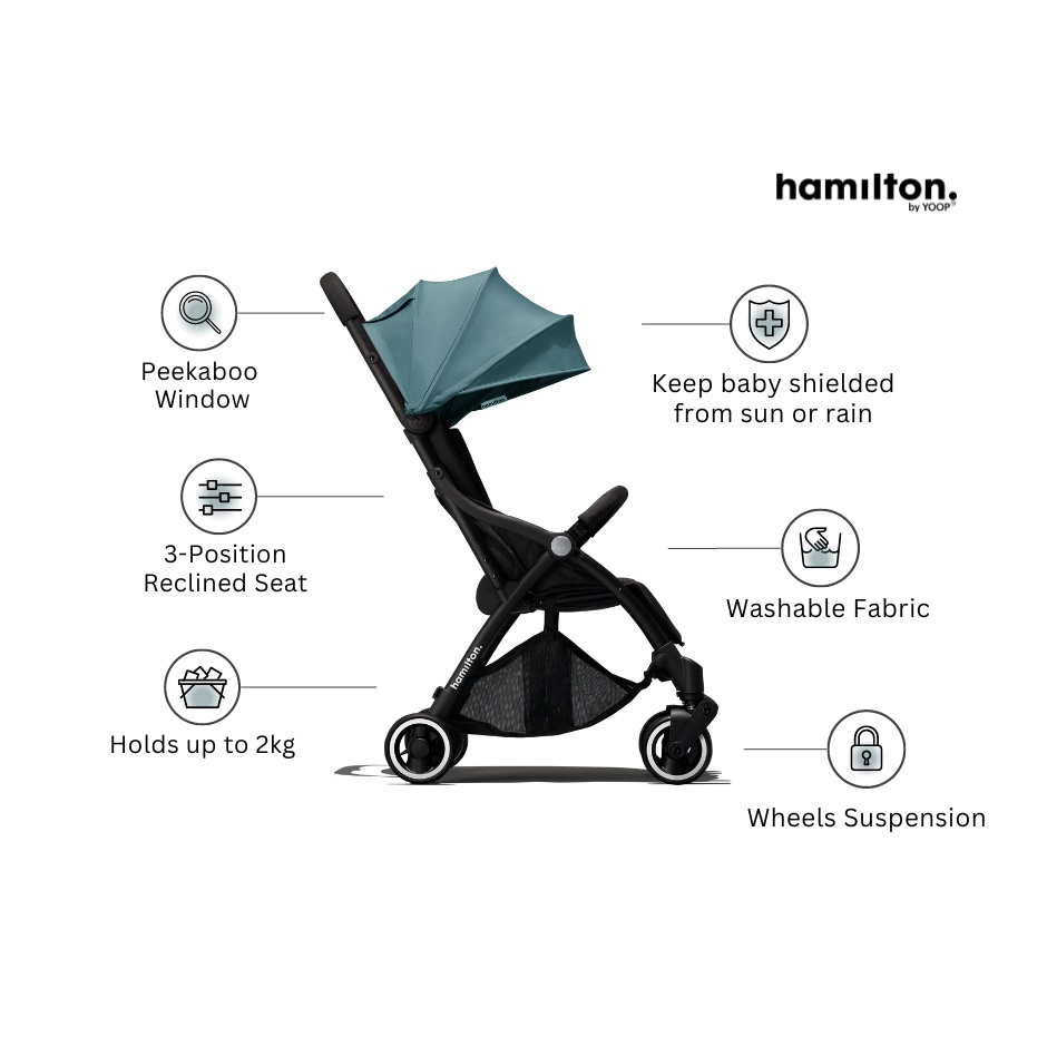 Mompush Nova Baby Stroller, Spacious Seat & Lie-Flat Mode, Toddler Stroller with Large UPF 50+ Canopy, Compact Folding with One Hand, Infant Stroller for Birth to 50 LB