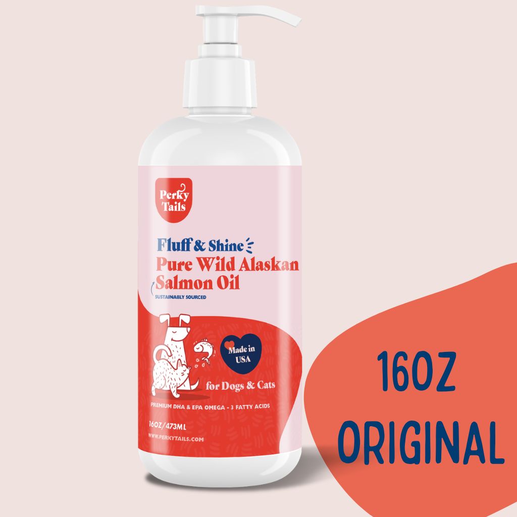 Perkytails Pure Wild Alaskan Salmon Oil for Dogs and Cats is a premium omega-3 fish oil that is great for skin and coat, joint, brain health and overall immunity!