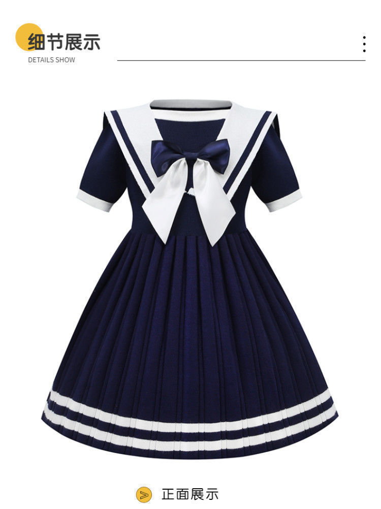 Angugu Girls Short Sleeve Dress Summer Dress Western Style Children's Princess Skirt Lorita JK Navy Style Little Girl Skirt College Style 2 To 12 Year Old for Teens Girls Terno Sale