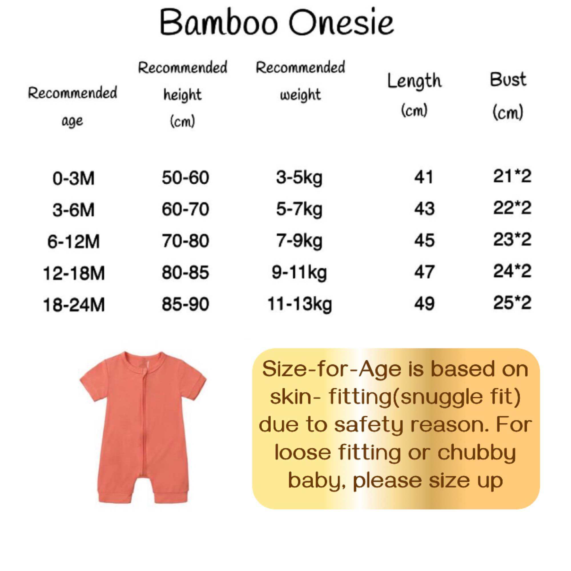 For loose fitting please upsize 1 or 2 size up for chubby baby