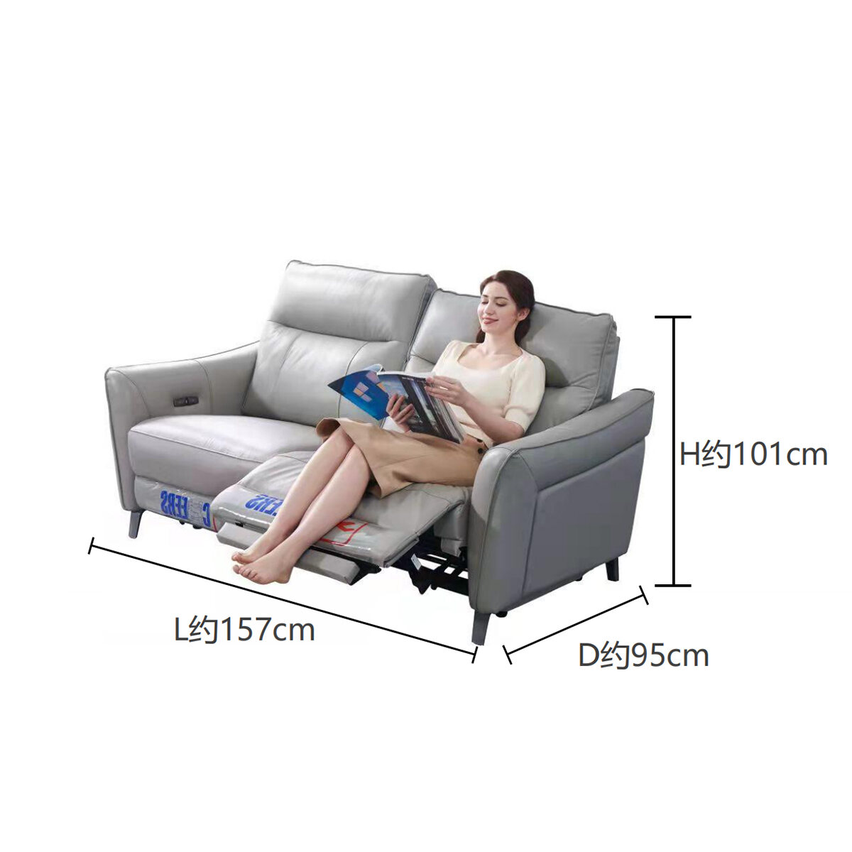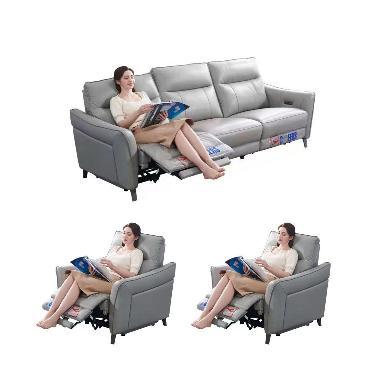 In Stock-Three-Seat Sofa [Double Electric] 1038# Light Apricot
