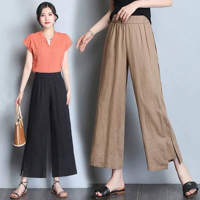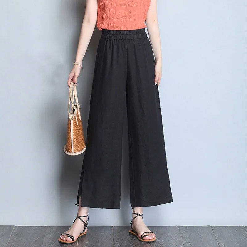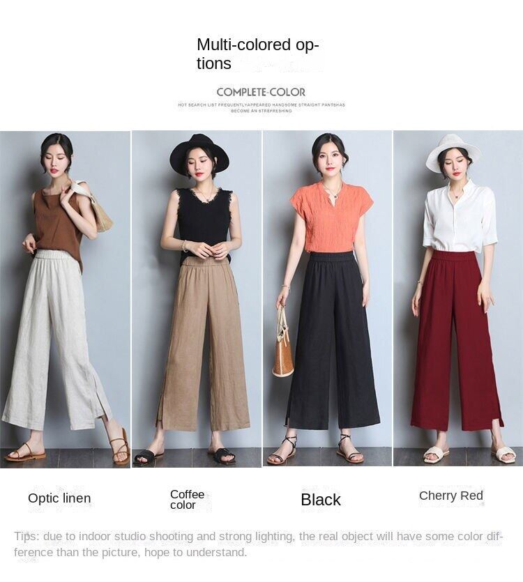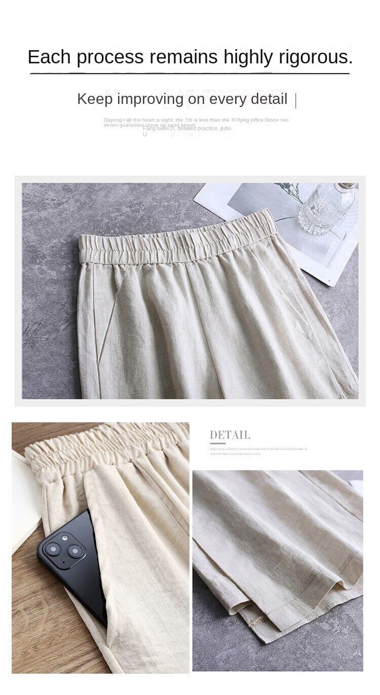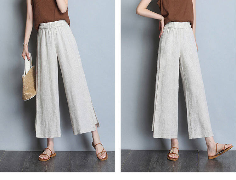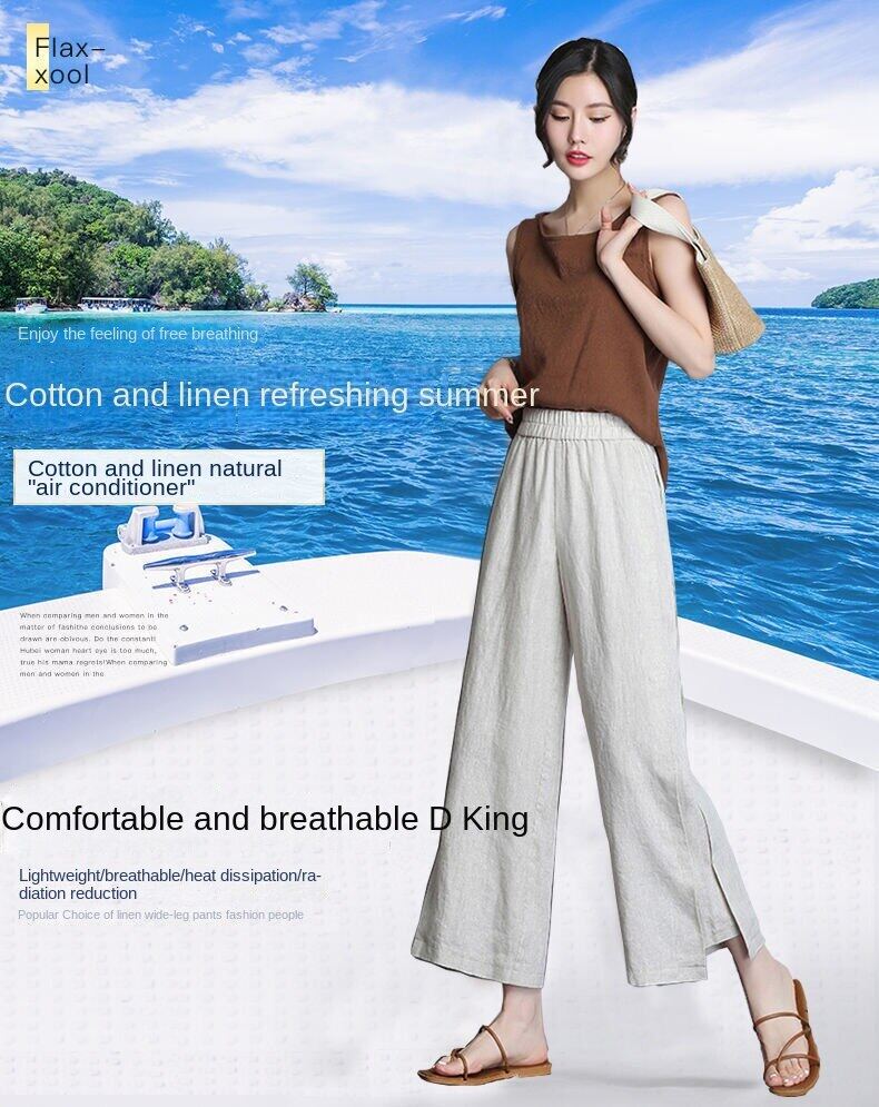 NW Cotton Linen Wide-leg Pants Women's Summer Thin Loose High-waisted Thin Middle-aged and Young Casual Pants