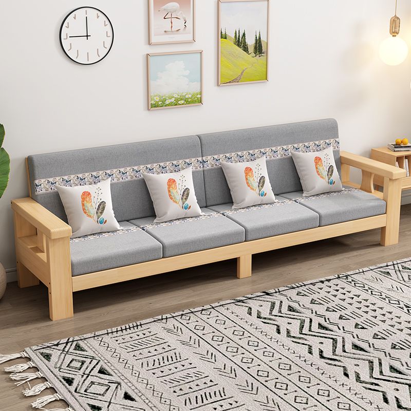 Solid Wood Sofa Combination Living Room Modern Minimalist Three-Seat Wooden Sofa New Chinese Small Apartment Wooden Art-Sofa