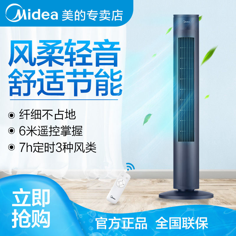 Midea Electric Fan Household Tower Fan Floor Fan Remote Control Fan Shaking Head Anion Bladeless Fan