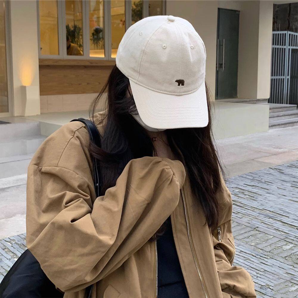 ?Polar Bear Baseball Cap For Women Embroidery Retro Peaked Cap For Men Sunscreen Couple Hats Cotton Fabric