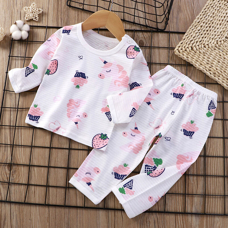 Baby Home Air Conditioning Clothes Pure Cotton Thin Summer Baby Long-Sleeved Children's Pajama Set Boys and Girls Spring and Autumn