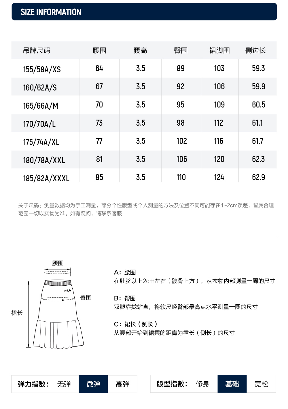 Brand: FILA CORE Product: FILA CORE Women's REVIVED CLASSIC MODERN HERITAGE Skirt in Navy SKU No. F11W331305FNV Color: Navy Gender: Women's Material: 91% Polyester, 9% Spandex This slim-fit skirt will follow your every move. And it is soft to the touch. Freedom of movement, stretch fabric for easy movement