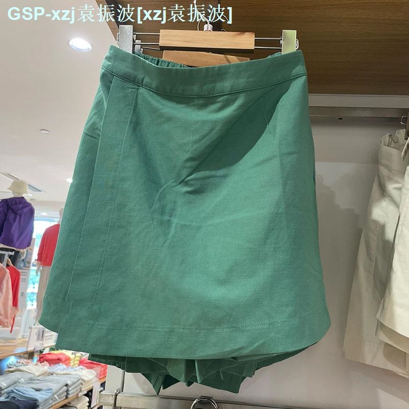 original Uniqlo New Fashion version U home 2023 summer hemp blended hakama pants mini skirt casual ladies slim skirt 456277