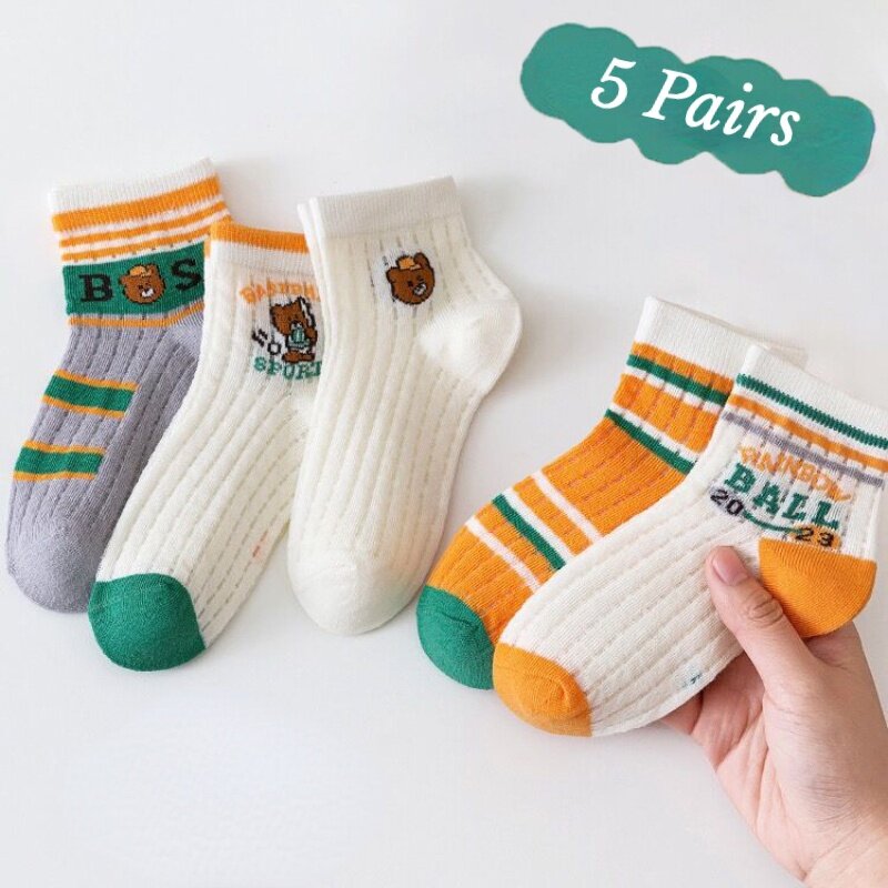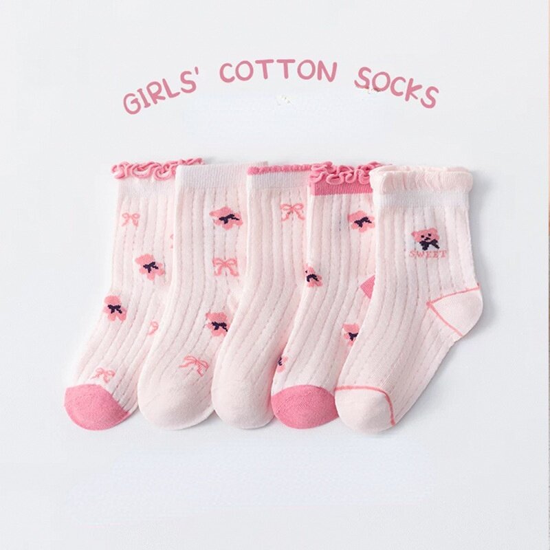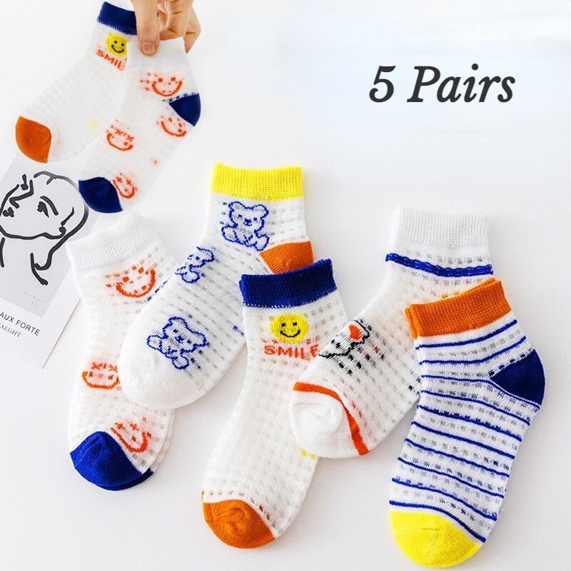 5 Pairs Children's Socks Girls Flower Thin Mesh Socks Baby Boys Cartoon Socks Summer Baby Socks 1-13 Years