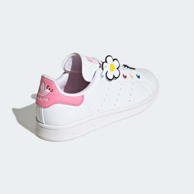 Elevate your summer style with the enchanting ADIDAS ORIGINALS X HELLO KITTY 3rd COLLABORATION STAN SMITHS SHOES FOR LADIES, crafted partially from recycled materials. These shoes celebrate the enduring spirit of summer by featuring Hello Kitty, the embodiment of friendship, in their design. Retaining classic Stan Smith elements like the clean white upper, perforated 3-Stripes, and contrasting heel tab, these kicks also incorporate playful colorful flower beads for a touch of whimsy. With a cushioned sockliner for superior comfort, step into a world of Hello Kitty charm and sustainability. Don't miss out on this limited-edition collaboration that embodies the essence of summer and style.