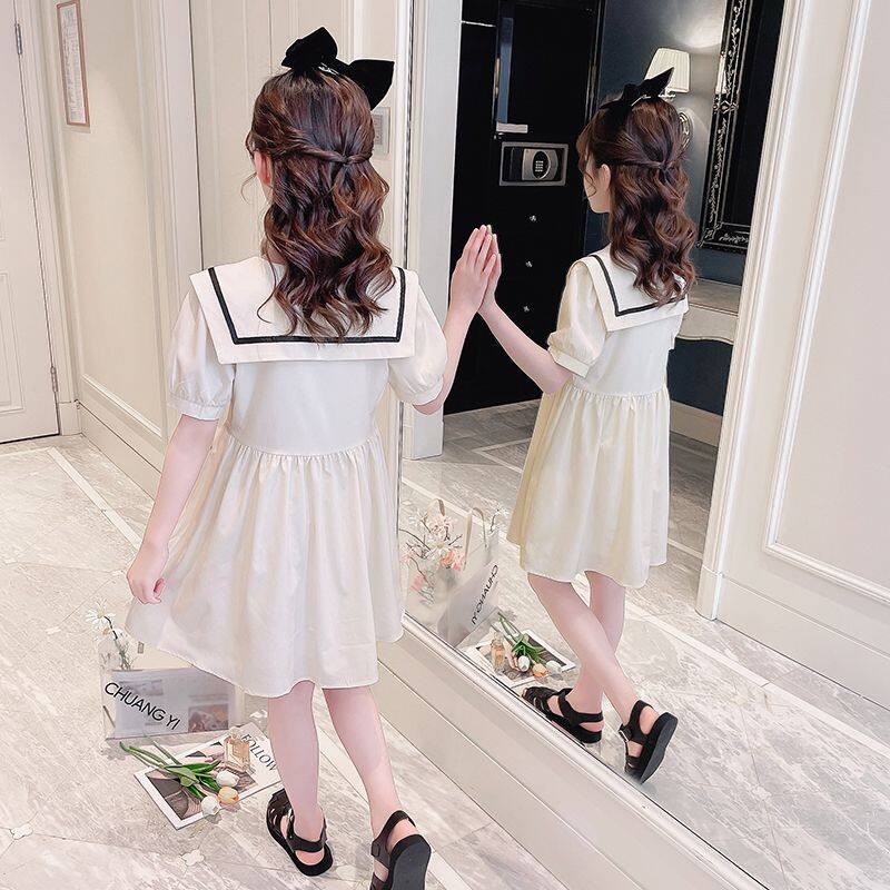 Fabric/material: Cotton/cotton Component content :71% (inclusive) -- 80% (inclusive) Pattern: Solid color Number of pieces: Single Sleeve length: Short sleeves Collar type: Navy collar Dress type: Princess dress Length: mid-length skirt Applicable age :3 years (inclusive) -- 6 years (exclusive),8 years (inclusive) -- 14 years (exclusive),6 years (inclusive) -- 8 years (exclusive) Style: College