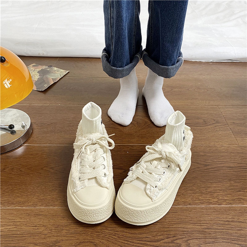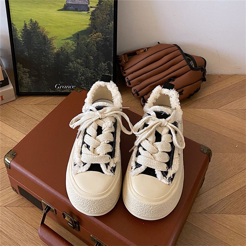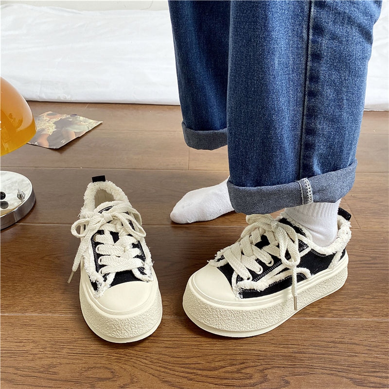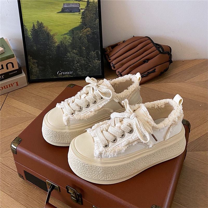 original High-end Uniqlo Yishaonian Japanese style thick-soled white shoes with raw edges for women ins super popular versatile casual sneakers internet celebrity beggar canvas shoes