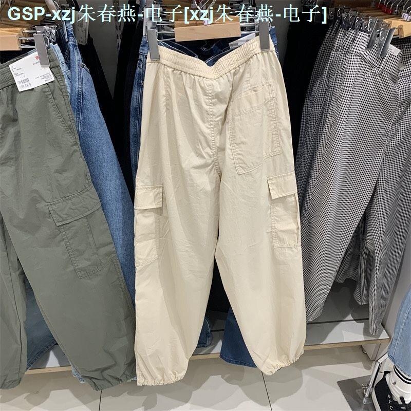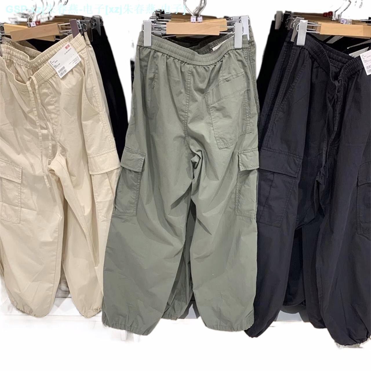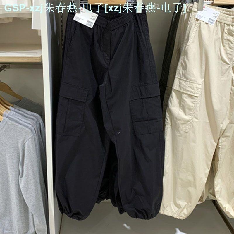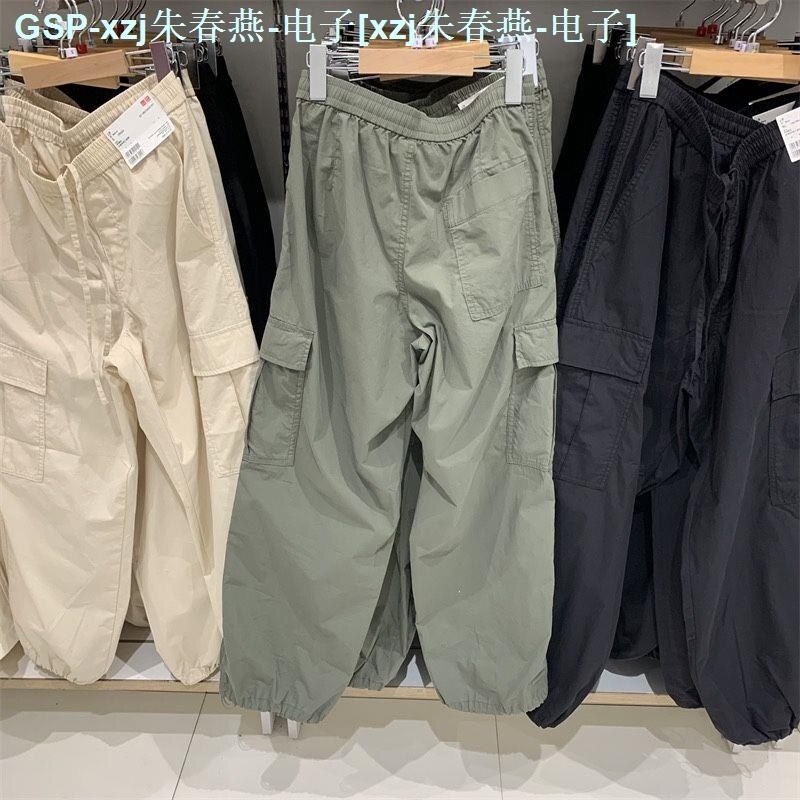 ☬❧◑ UNIQLO Youjia 2023 Casual Overalls Drawstring Drawstring Foot Mouth Large Pocket High Waist Outdoor Sports Pants 456106