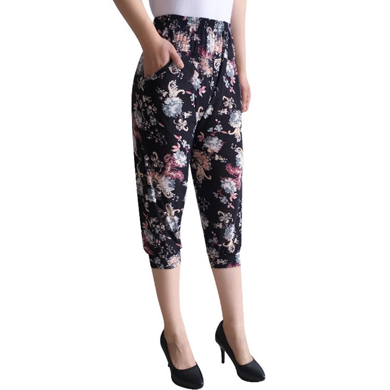 * Item Description: Women's Middle Aged Casual Harem Pants Elastic Waist Pockets Loose Trousers