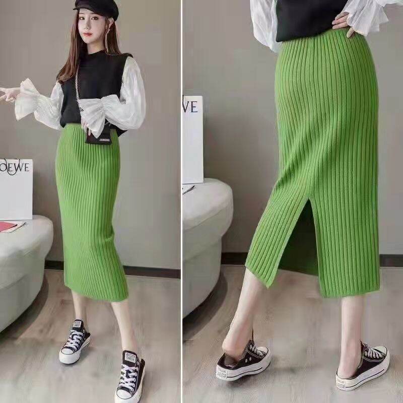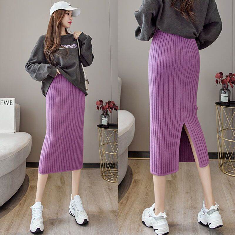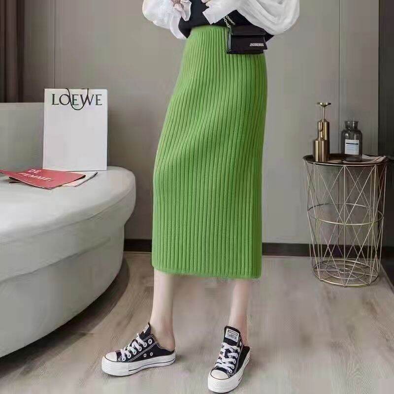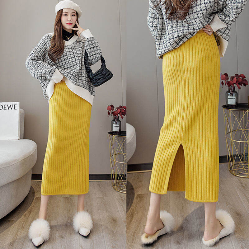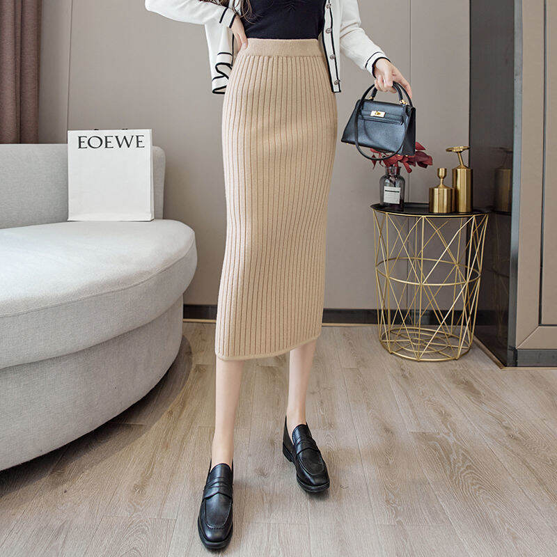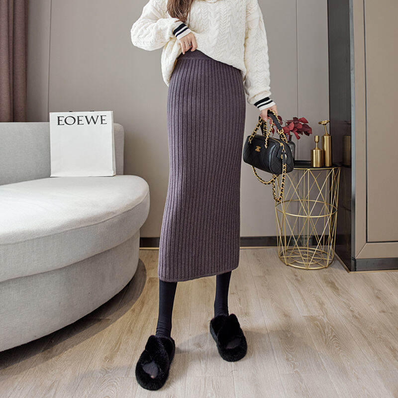 Sunken Stripe Thickened Straight Mid Length Long Length Trendy Skirt