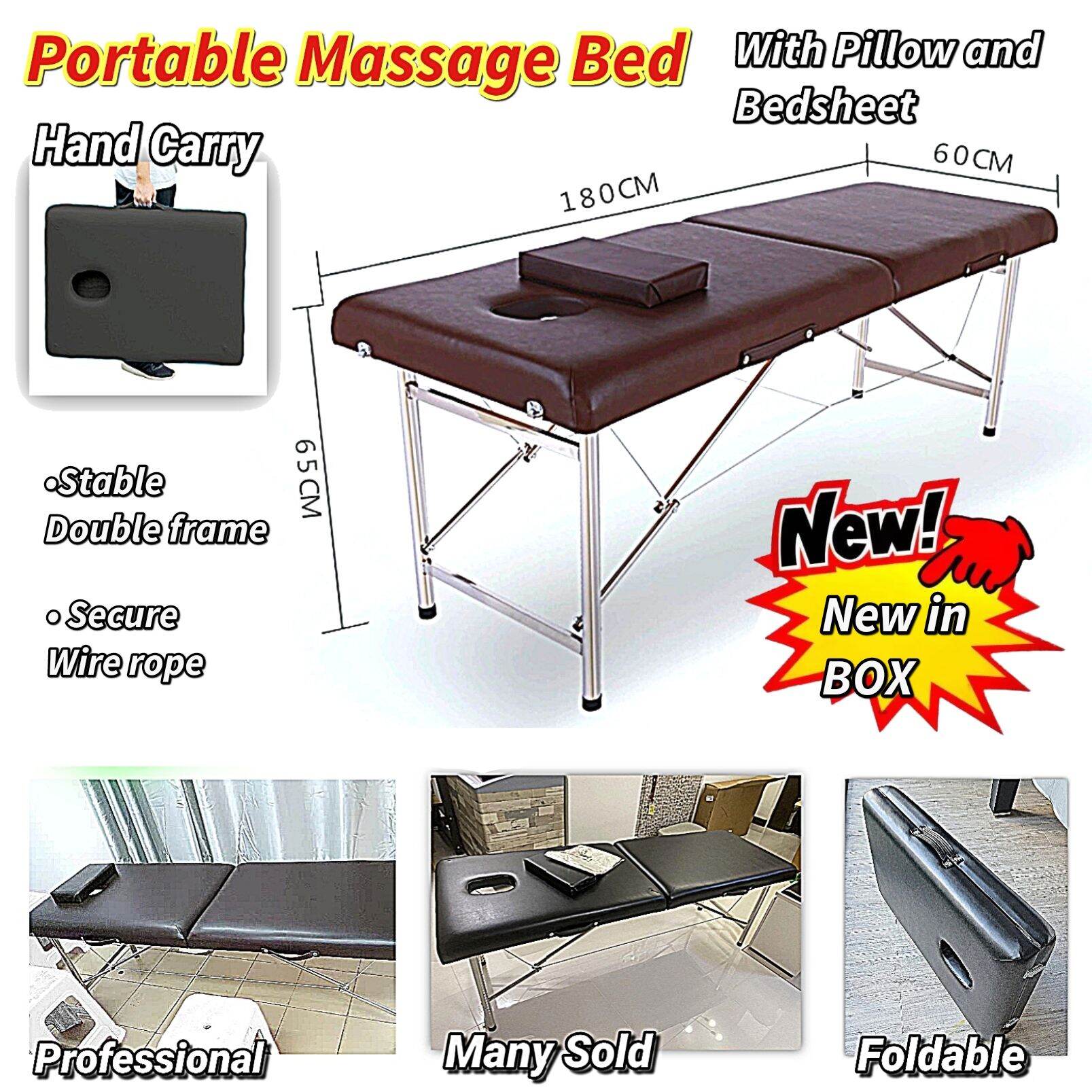Massage bed | with pillow headrest and bedsheet | Foldable and portable | Double Frame | STRONG 250kg support | Black | option of add on Stool | for home or retail Facial, Salon, Tattoo